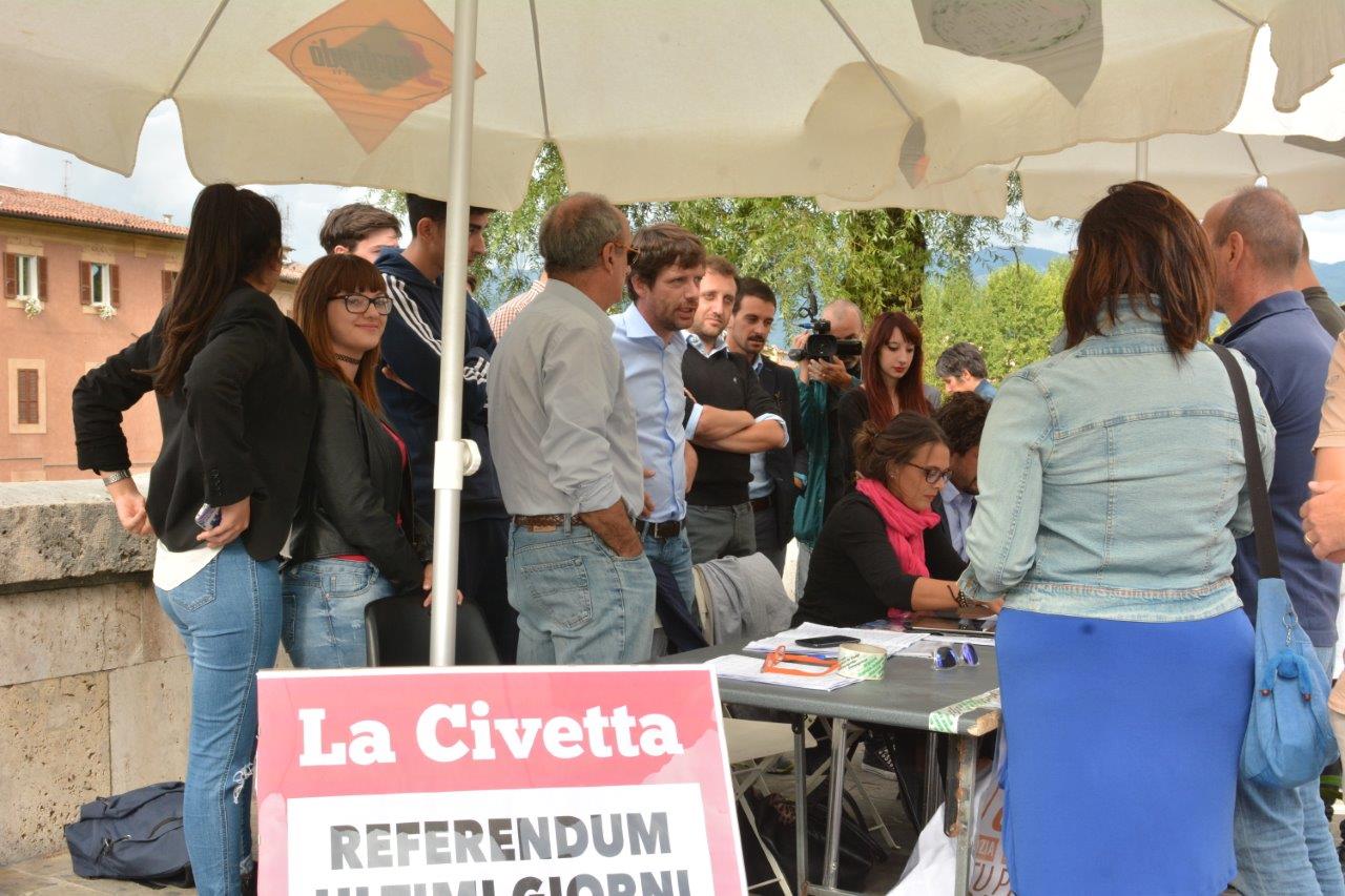 Pippo Civati è stato oggi presente con il Comitato reatino “Itaca è Possibile” al banchetto per la raccolta referendaria al Ponte Romano nei pressi di piazza Cavour. «Sono rimasti pochi giorni e l’obiettivo è più che raggiungibile – fanno sapere dal comitato – 500.000 firme per permettere 8 referendum su scuola, lavoro, ambiente e legge elettorale».