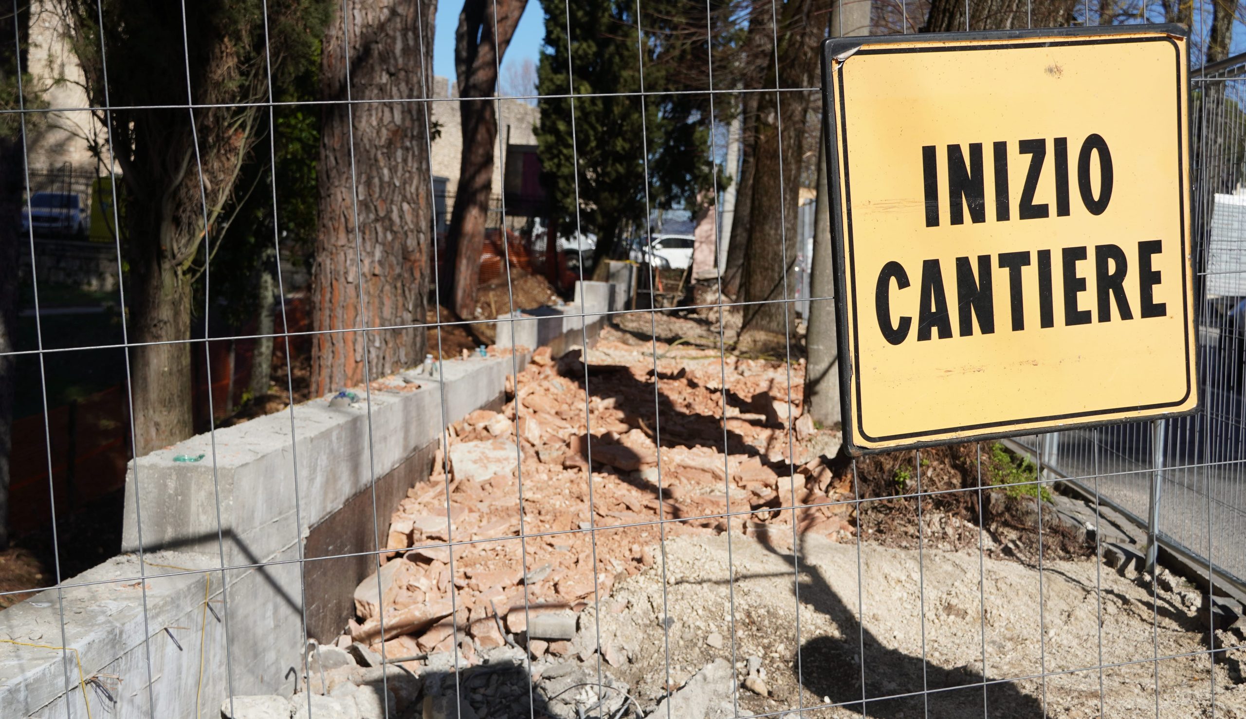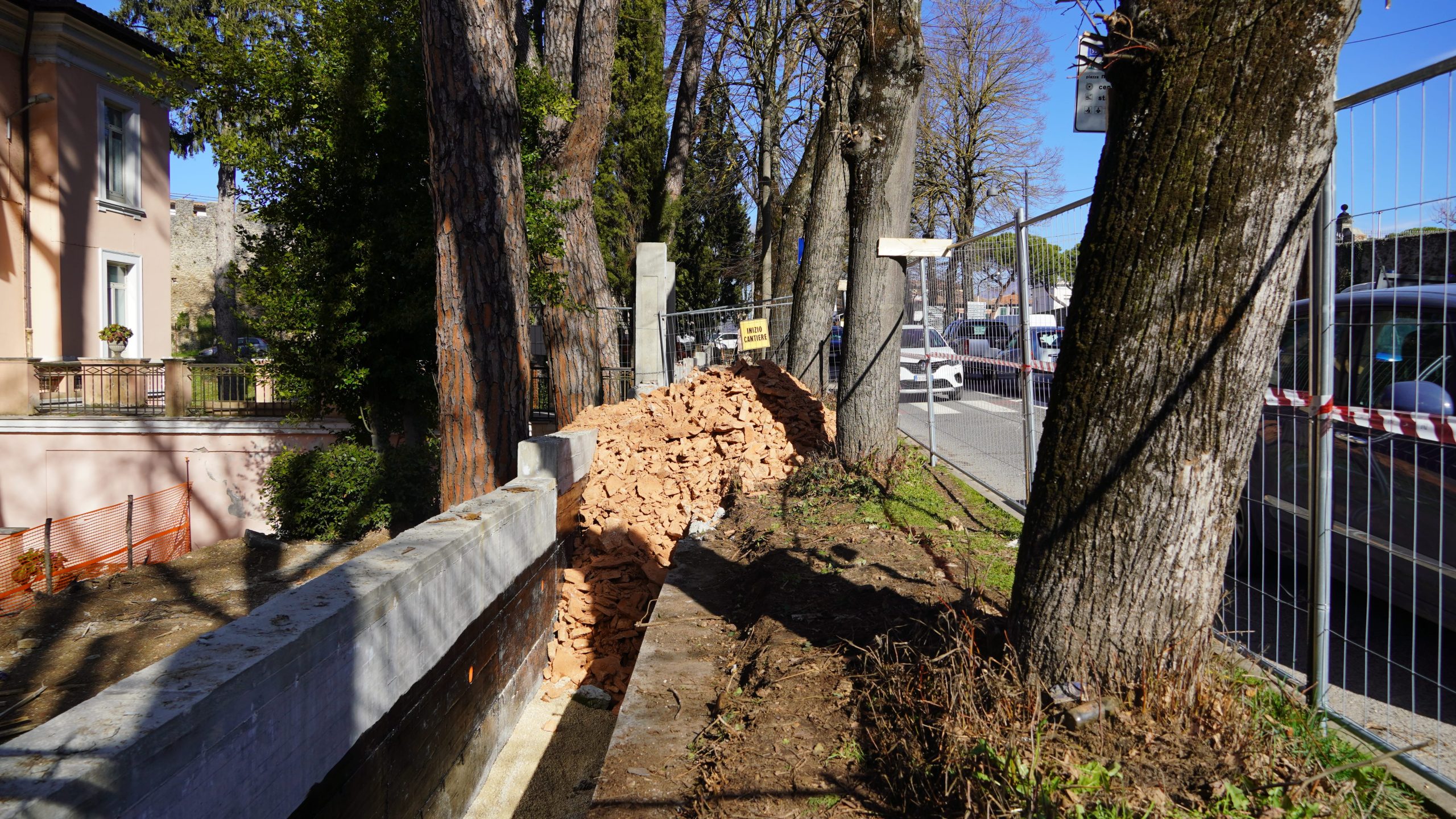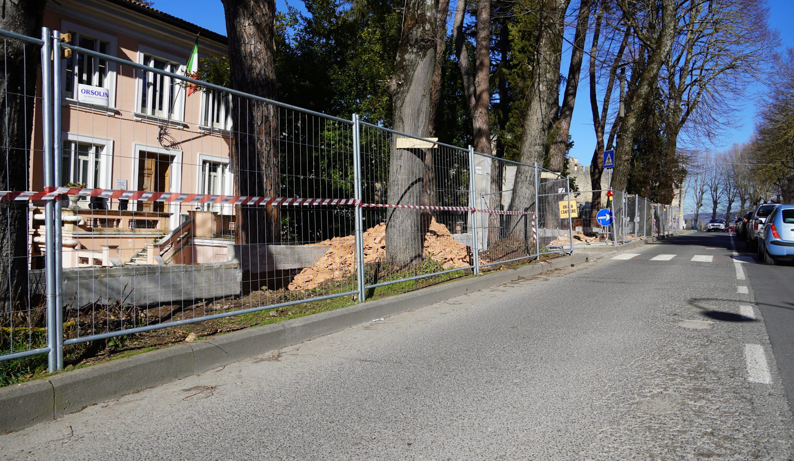L’intervento in corso prevede, tra le altre opere, la rimozione e il successivo riposizionamento della recinzione esistente a delimitazione del fabbricato ex sede ASL, la rimozione e il successivo rifacimento del muro di contenimento e la realizzazione di un marciapiede funzionale per il transito pedonale e di una adeguata sede ciclabile.