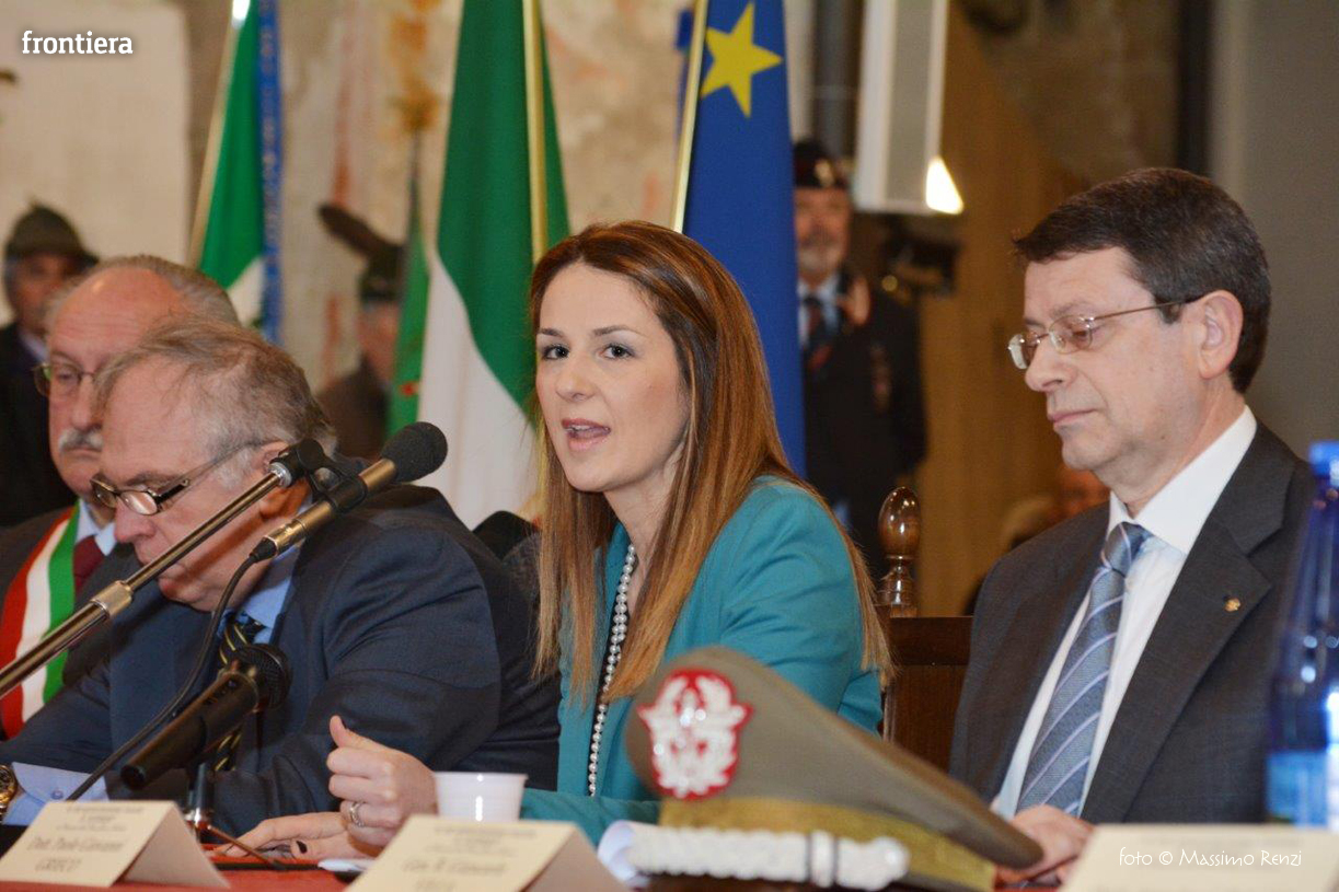 La Presidentessa del Lions Club Antrodoco “Velina Gens”, Dott.ssa Alessia Fabrizi, ha letto il messaggio di augurio che il Presidente della Repubblica, On.le Sergio Mattarella, ha voluto rivolgere alle Autorità ed alla cittadinanza; ha quindi salutato gli ospiti presenti ringraziando, in particolare, la Dott.ssa Maria Donata Spadolini, nipote dell’On.le Giovanni Spadolini, ed il Prof. Cosimo Ceccuti, Presidente della Fondazione Spadolini Nuova Antologia di Firenze, che hanno onorato della loro presenza la manifestazione per aver gentilmente permesso l’esposizione delle due bandiere tricolore, rinvenute in una intercapedine di un’abitazione di proprietà del Prof. Tommaso Curini, in località Ponte Alto – Comune di Castel Sant’Angelo, insieme ad una pistola di fabbricazione belga Pepper Box risalente al 1831.