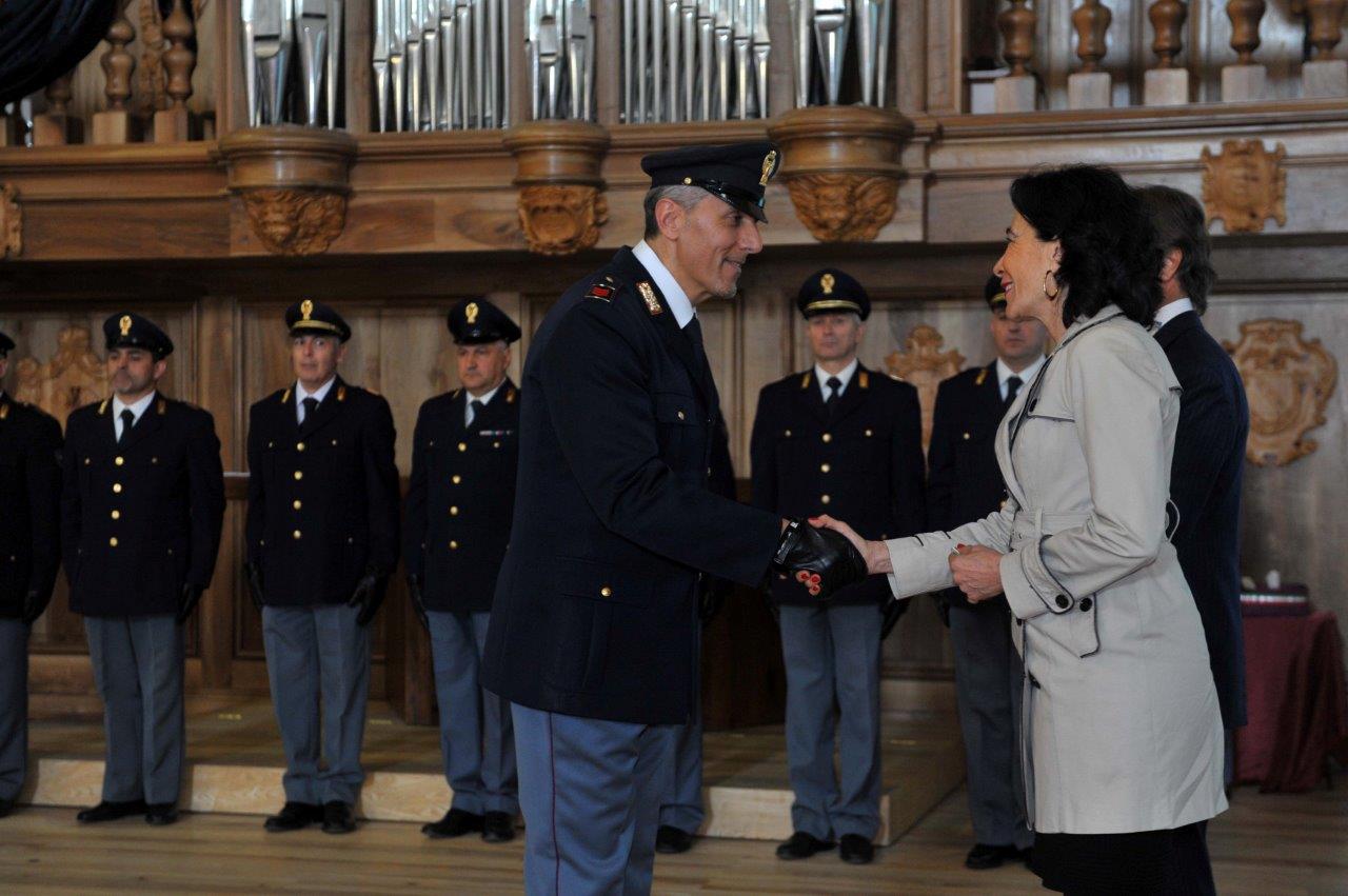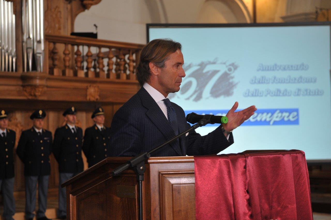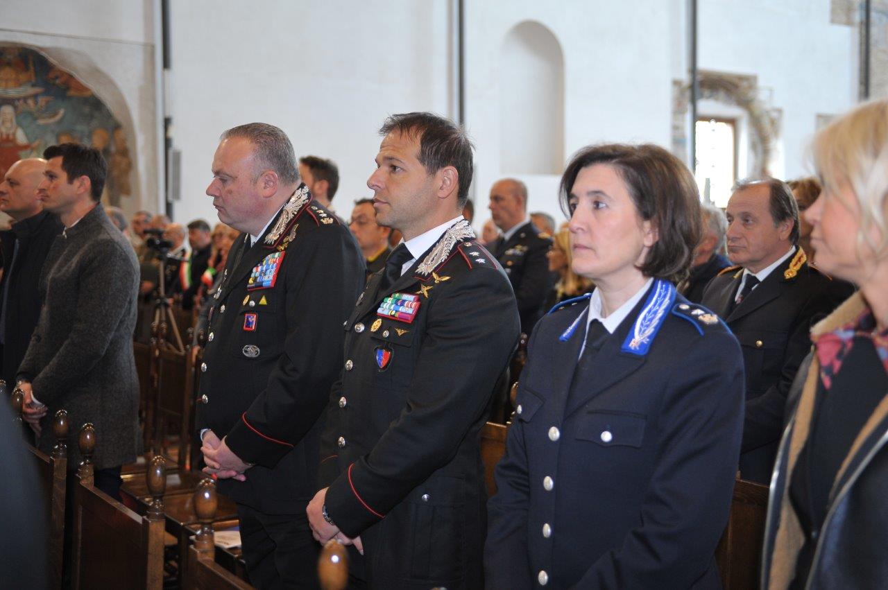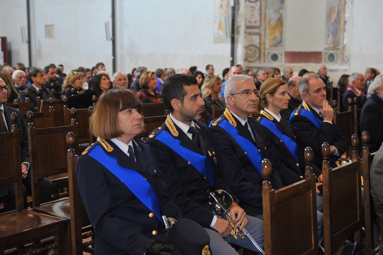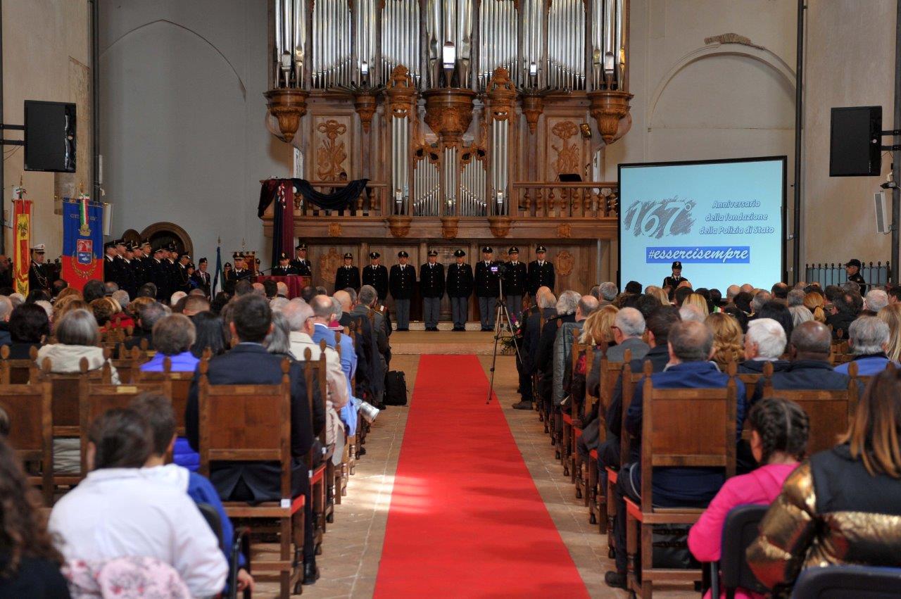 La mattinata è proseguita nell’imponente chiesa di San Domenico, alla presenza delle autorità civili, militari e religiose, di oltre 150 studenti e di numerosi cittadini che hanno dimostrato così la loro vicinanza alla Polizia di Stato, Corpo sempre presente e vicino alla popolazione. Durante la cerimonia, che ha avuto come motto celebrativo “Esserci sempre”, a richiama il constante ruolo della Polizia di Stato tra la gente al fine di garantirne sempre la sicurezza e la prossimità, sono stati letti i messaggi inviati dal Presidente della Repubblica, dal Ministro dell’Interno e dal Capo della Polizia. «Questo è stato un anno intenso – ha detto Mannoni – in cui abbiamo voluto garantire il massimo livello di sicurezza nella nostra provincia. In un territorio ancora fortunatamente esente dalla criminalità organizzata, pur tenendo sempre alta la guardia, ci siamo dedicati ai reati più presenti e sentiti dalla gente: delinquenza generica, furti, spaccio di sostanze stupefacenti. A livello nazionale i reati sono calati,così come nella provincia di Rieti: siamo al secondo posto tra le province italiane più sicure, addirittura al primo posto in Italia per i reati contro il patrimonio. Nonostante questi dati non possiamo riutenrci pienamente soddisfatti del nostro lavoro finchè la popolazione non avvertirà il più completo e totale senso di sicurezza».