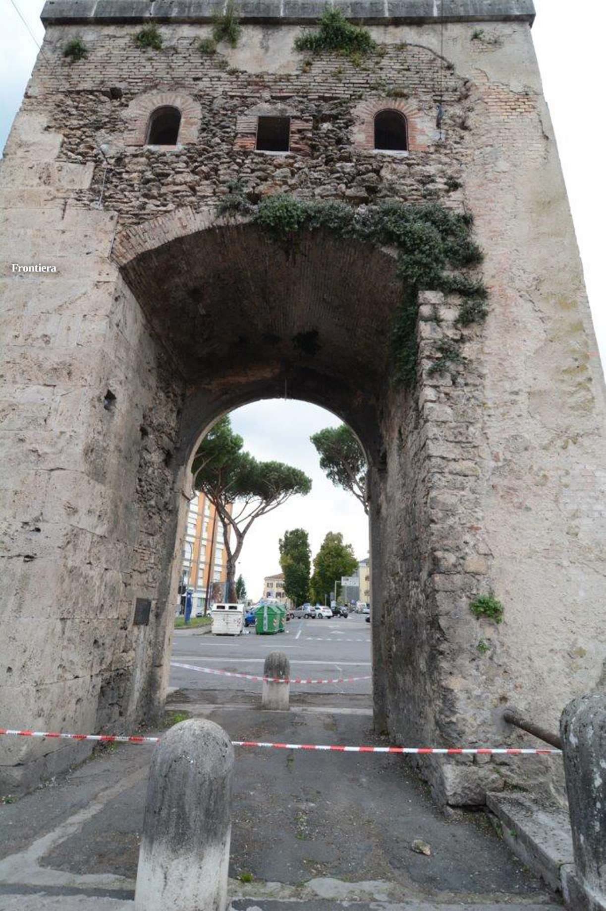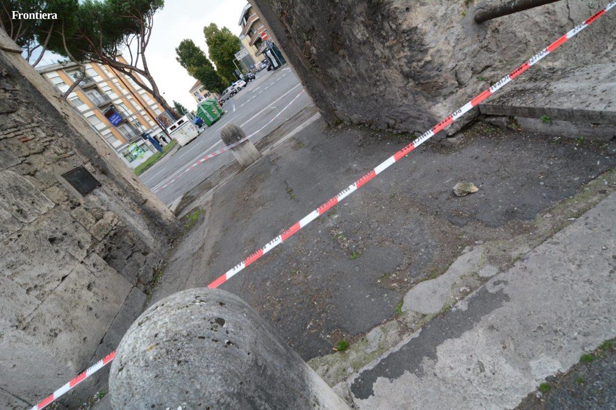 La caduta di nuovi parti di volta ha portato all’ennesima transennatura delle architetture di piazza Della Repubblica, compresa la storica “Porta Romana”.