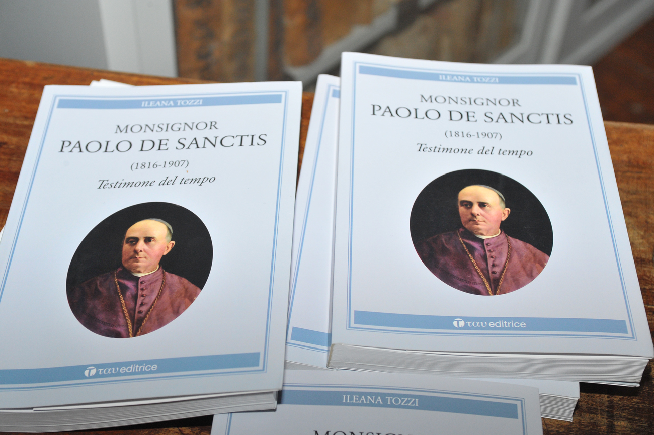 «Le sue opere d’intelletto, le tracce documentarie delle sue azioni pastorali hanno il pregio di contribuire a scrivere la storia tenendo conto del punto di vista di chi è sconfitto»: si conclude così, con questa notazione rapida eppure decisiva, l’introduzione metodologica all’ultima fatica editoriale di Ileana Tozzi. Lo «sconfitto» in questione, che però non si ritenne mai tale, è mons Paolo de Sanctis, un figlio illustre della nostra Chiesa al quale la studiosa reatina, da sempre impegnata in un’attenta opera di escavazione del passato della nostra città e del nostro territorio, ha dedicato un bel volume, dato alle stampe per i tipi della Tau Editrice di Todi, dal titolo Monsignor Paolo de Sanctis (1819-1907). Testimone del tempo.