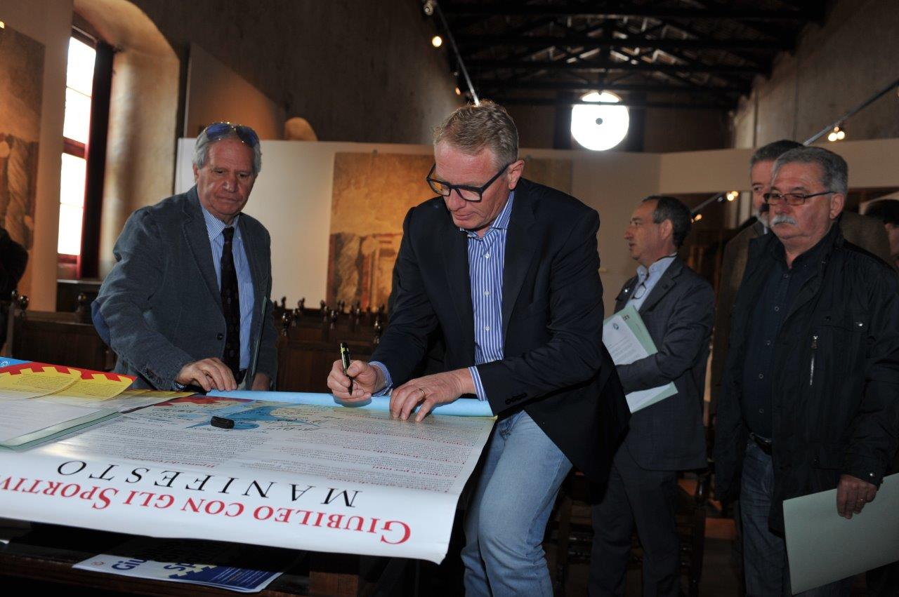 “Pensiamo ai giovani e allo sport, ricordiamo Andrea ed andiamo avanti in uno spirito solidale. Come alcuni sport hanno adottato il terzo tempo, questo dovrebbe appartenere a tutti noi. C’è un vecchio proverbio Masai che recita: Se vuoi arrivare primo corri da solo, se vuoi andare lontano cammina insieme. Questo è quello che dovremmo fare. Occasioni come il Giubileo con gli Sportivi che ci consentono di stare insieme, fanno bene a tutti. Su certi aspetti valoriali, come lo stare insieme, l’amicizia, l’integrazione, dobbiamo viaggiare tutti insieme. Il Coni c’è con tutta la sua struttura ed è pronto a dare una mano”.