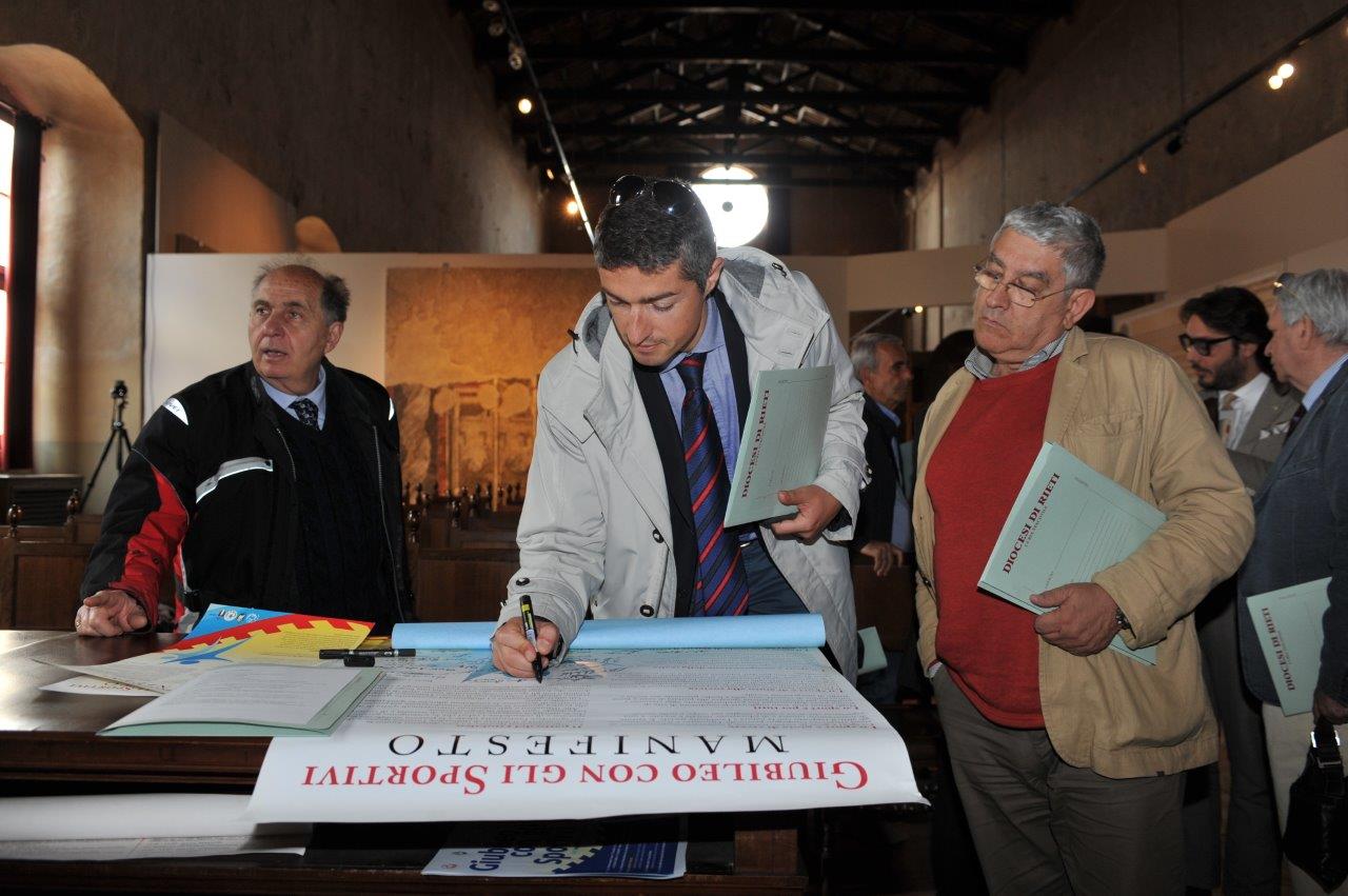 Il vescovo di Rieti monsignor Domenico Pompili ha spiegato la volontà che ha mosso la decisione di dedicare il Giubileo allo sport: “Il Giubileo evoca il senso della festa, ma è anche la strada per reinterpretare il mondo dello sport come uno spazio franco che ci consente di vivere una esperienza umana per se stessa. Lo sport che vogliamo festeggiare è quello che ciascuno può fare e che gli consente di sperimentare il proprio corpo e la propria fisicità, all’interno di una competizione che lo metta in relazione con gli altri e lo aiuti ad uscire fuori come singolo anche insieme alla squadra. Lo sport è un mondo che galvanizza tutti e può dare la spinta a promuovere il nostro territorio. Il Giubileo con gli sportivi sarà l’inizio di un cammino che deve continuare e trovare sempre migliori occasioni per ritrovarsi insieme. Sebbene la ricchezza delle discipline sportive vada preservata, sarebbe miope pensare di andare alla battaglia ognuno per proprio conto, dobbiamo trovare il modo per mettere a sistema questa grande risorsa che è per la nostra città lo sport”.