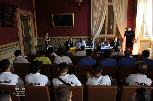 E’ partita ufficialmente la stagione 2012-2013 del Real Rieti che è stato presentato questa mattina ospite dell’amministrazione provinciale di Rieti a Palazzo Dosi. Roster, staff tecnico e societario al completo, maglie ufficiali della prossima stagione, autorità. Non è mancato davvero nessun ingrediente per rendere speciale questo “nuovo inizio” degli amaranto-celesti.