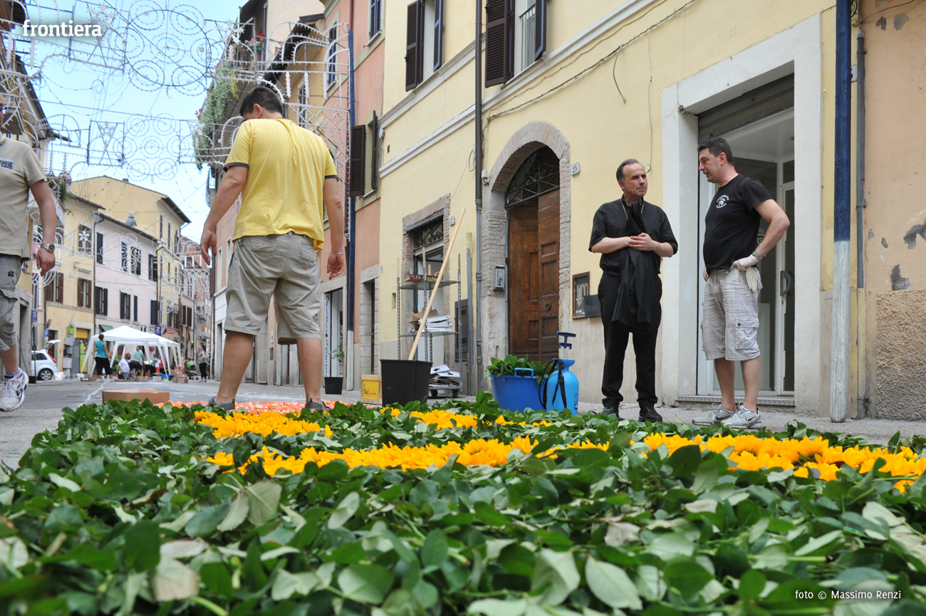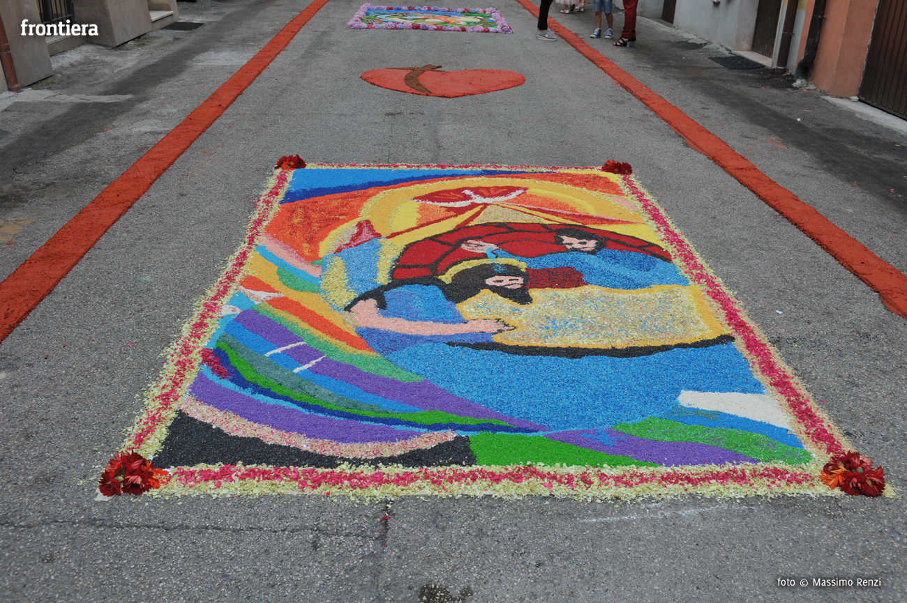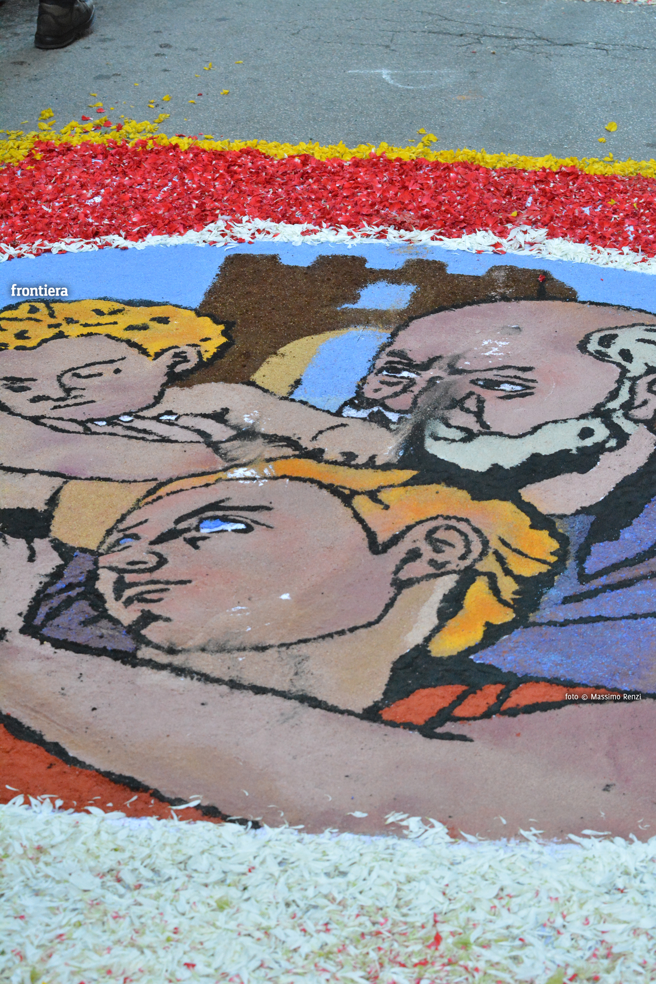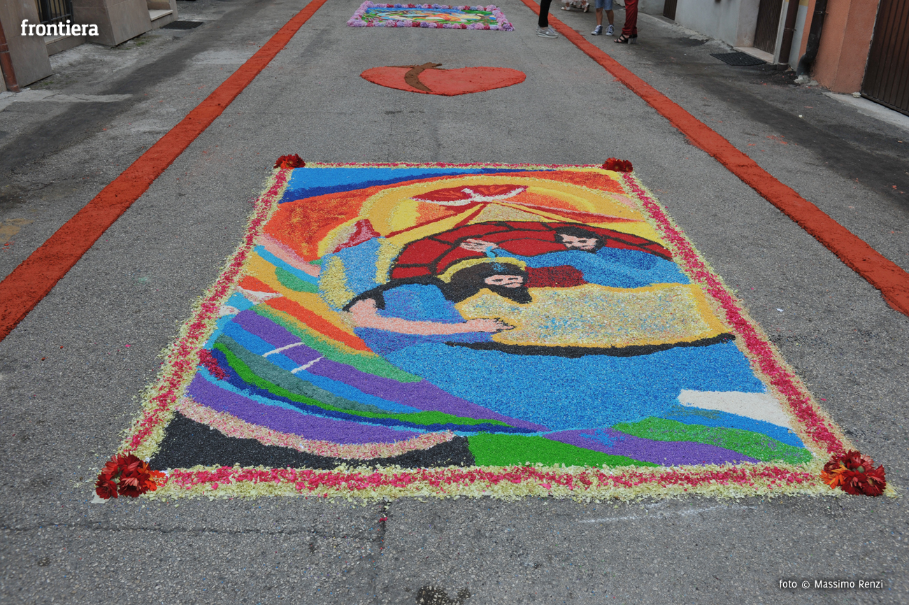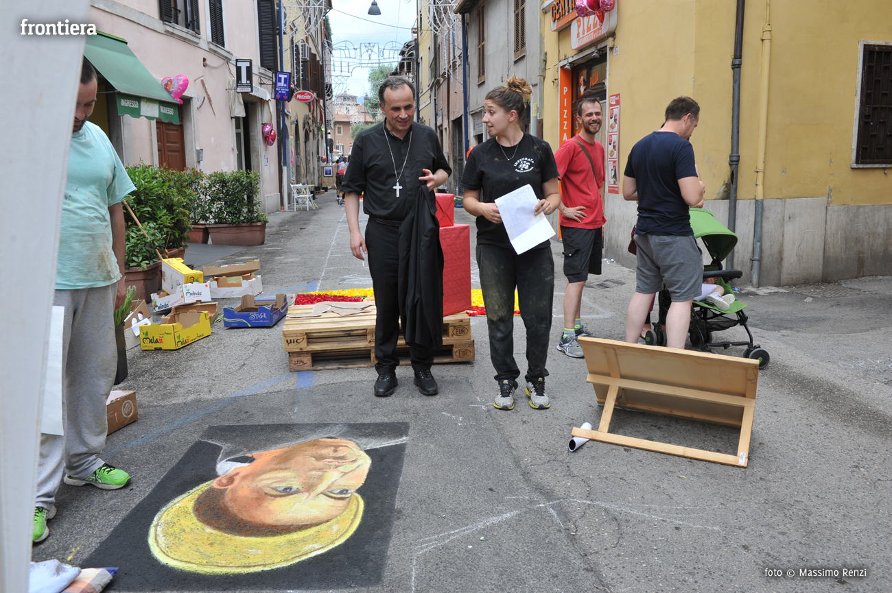Per tutti il vescovo ha avuto una parola, un gesto, una carezza. E gli infioratori non hanno mancato di dimostrare affetto e simpatia. Una grande emozione per ciascuno: «quando si interagisce tutti allo stesso modo, è motivo di grande conforto» ha detto don Domenico, che proprio nel senso dell’agire insieme, nell’intraprendere un cammino comune, ha individuato il messaggio, la lezione e il potenziale della devozione antoniana.