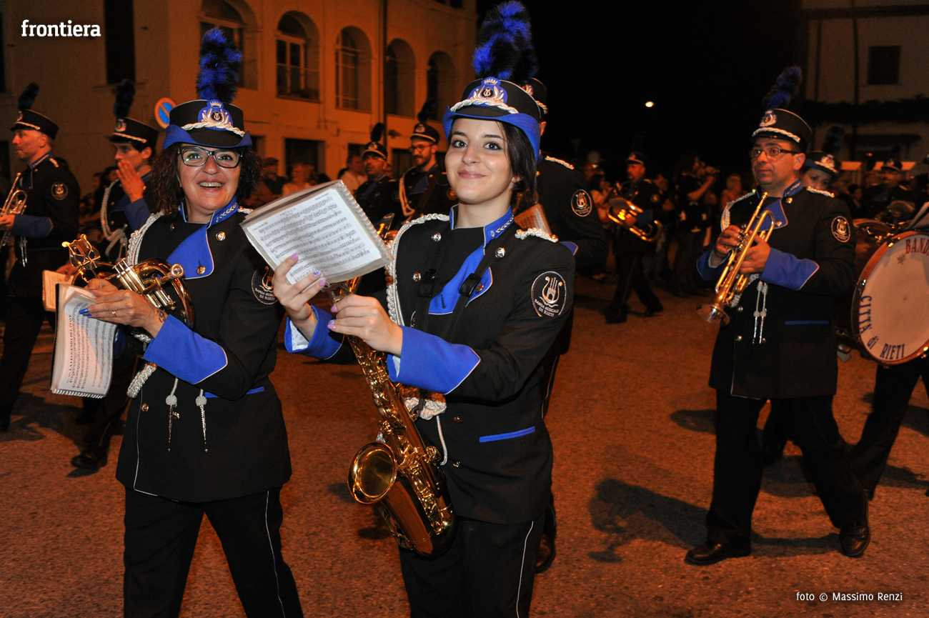 Come sempre nella giornata culminante dei festeggiamenti antoniani, anche quest’anno hanno risuonato nelle strade del centro storico di Rieti, sin da metà mattina, le note delle bande musicali che nel pomeriggio avrebbero prestato servizio durante la solenne processione dei ceri. L’accompagnamento musicale del corteo è stato assicurato dalle formazioni di Rivodutri, Lisciano e Rieti, che si sono incolonnate con i tanti fedeli per scandire il ritmo dei loro passi in alternanza con i momenti di preghiera.