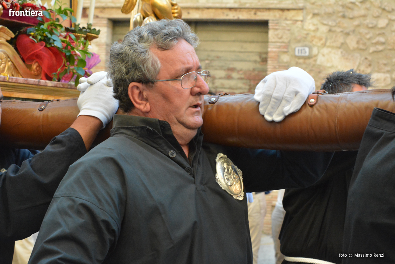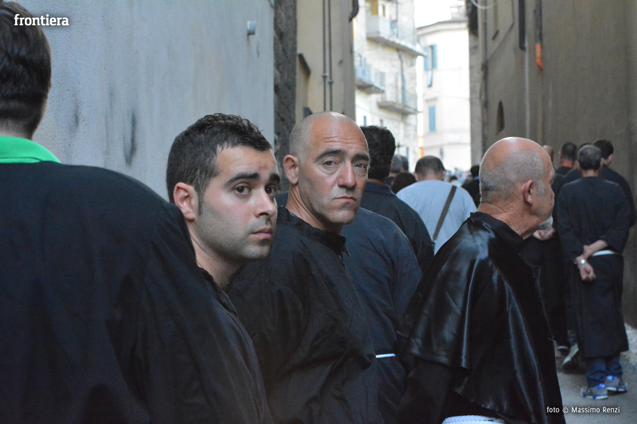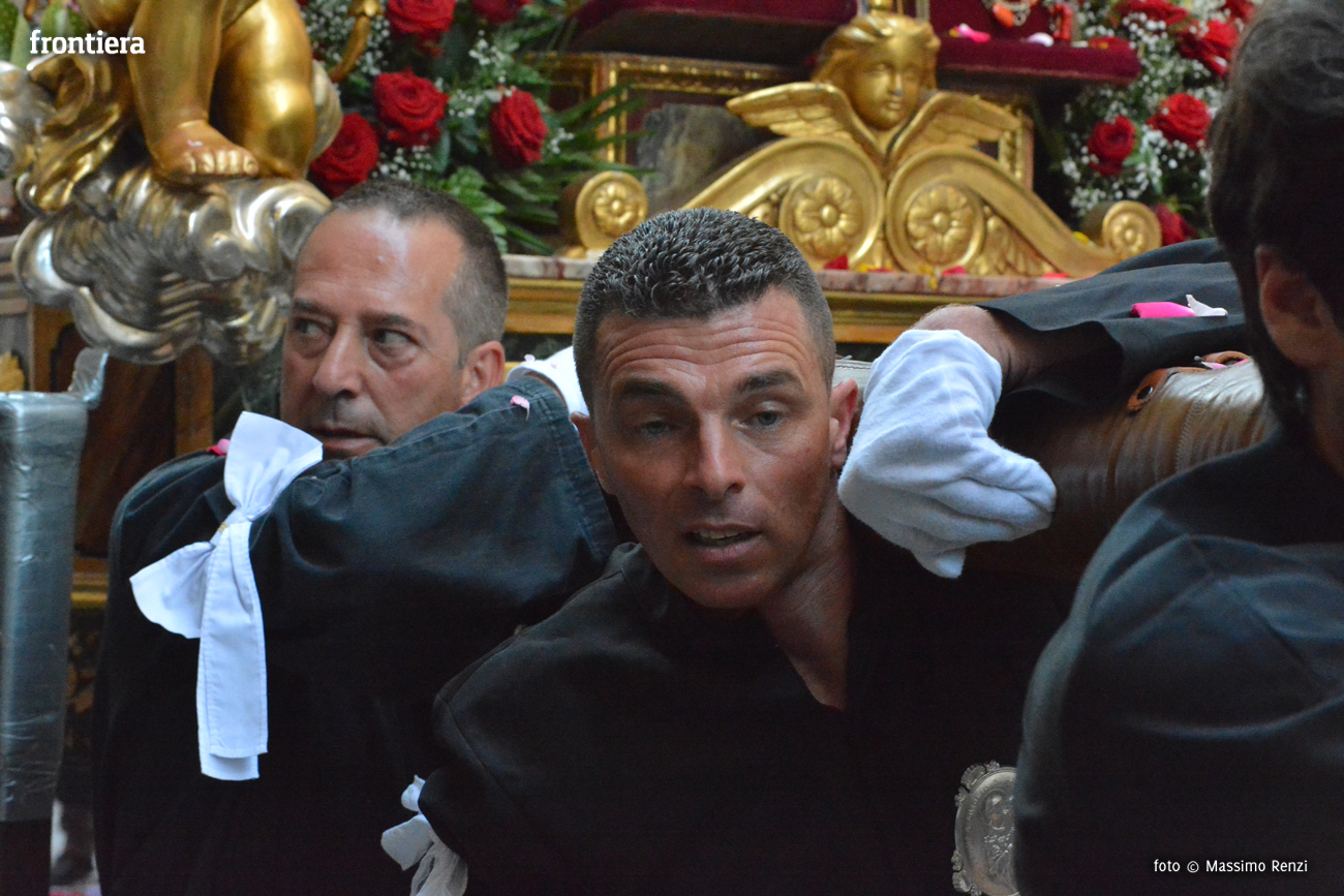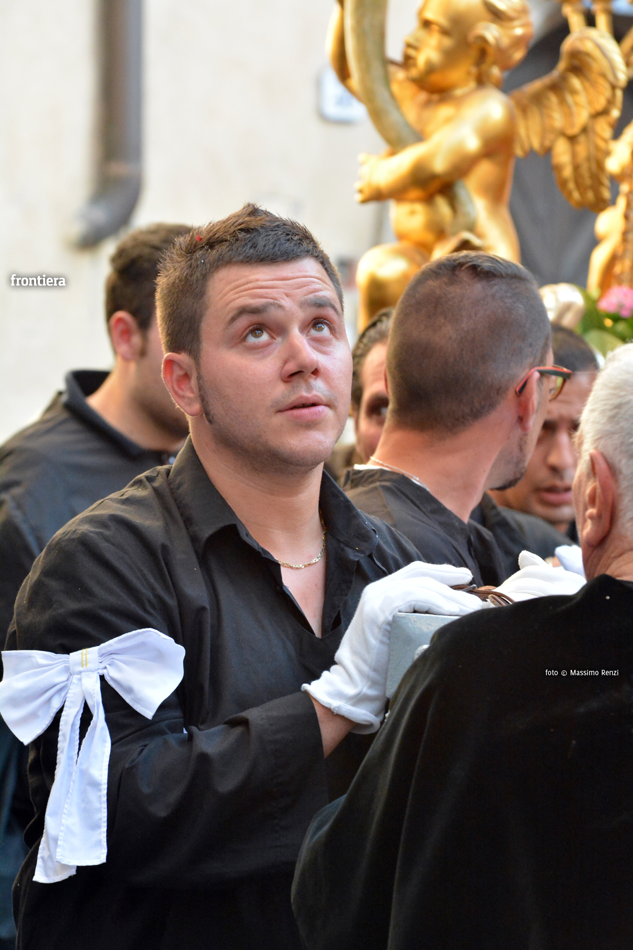 L’impressione è che quest’anno la processione dei ceri, pur affollata come di consueto, sia stata più rapida che negli anni passati. Ciò non ha certamente lenito la fatica dei portatori, ai quali semmai va ascritto il merito di questa riduzione dei tempi. Guidati dal capomacchina Giovanni Flammini, i “fratelli”, i cui nomi sono stati estratti nel chiostro del Liceo Scientifico nella serata del 25 giugno, si sono alternati nel trasporto della pesante immagine del santo per più di quattro ore, fino a quando la statua non ha fatto ritorno a San Francesco per l’allocuzione finale del vescovo, la benedizione conclusiva e il riposizionamento della “macchina” nella sua sede dietro l’altare maggiore della chiesa dedicata al Poverello d’Assisi.