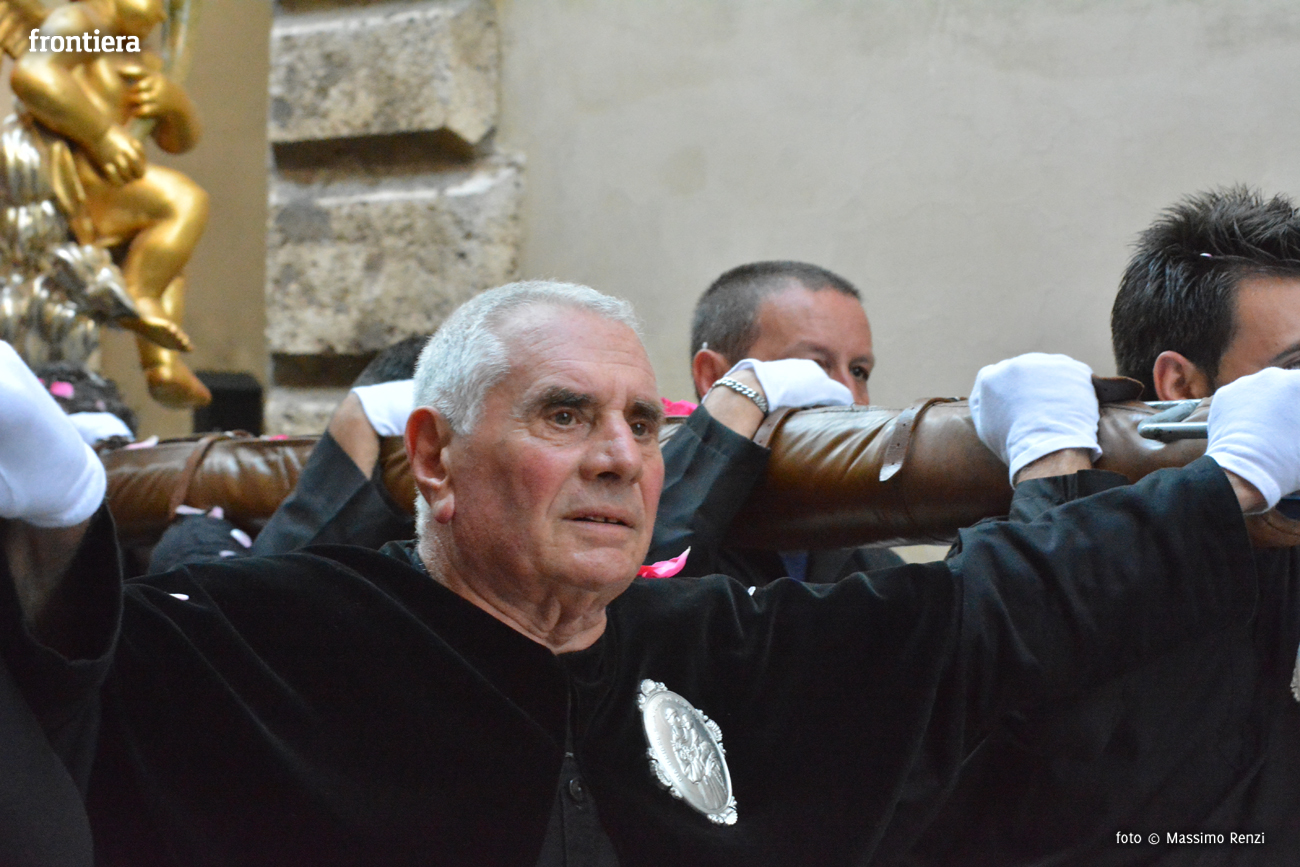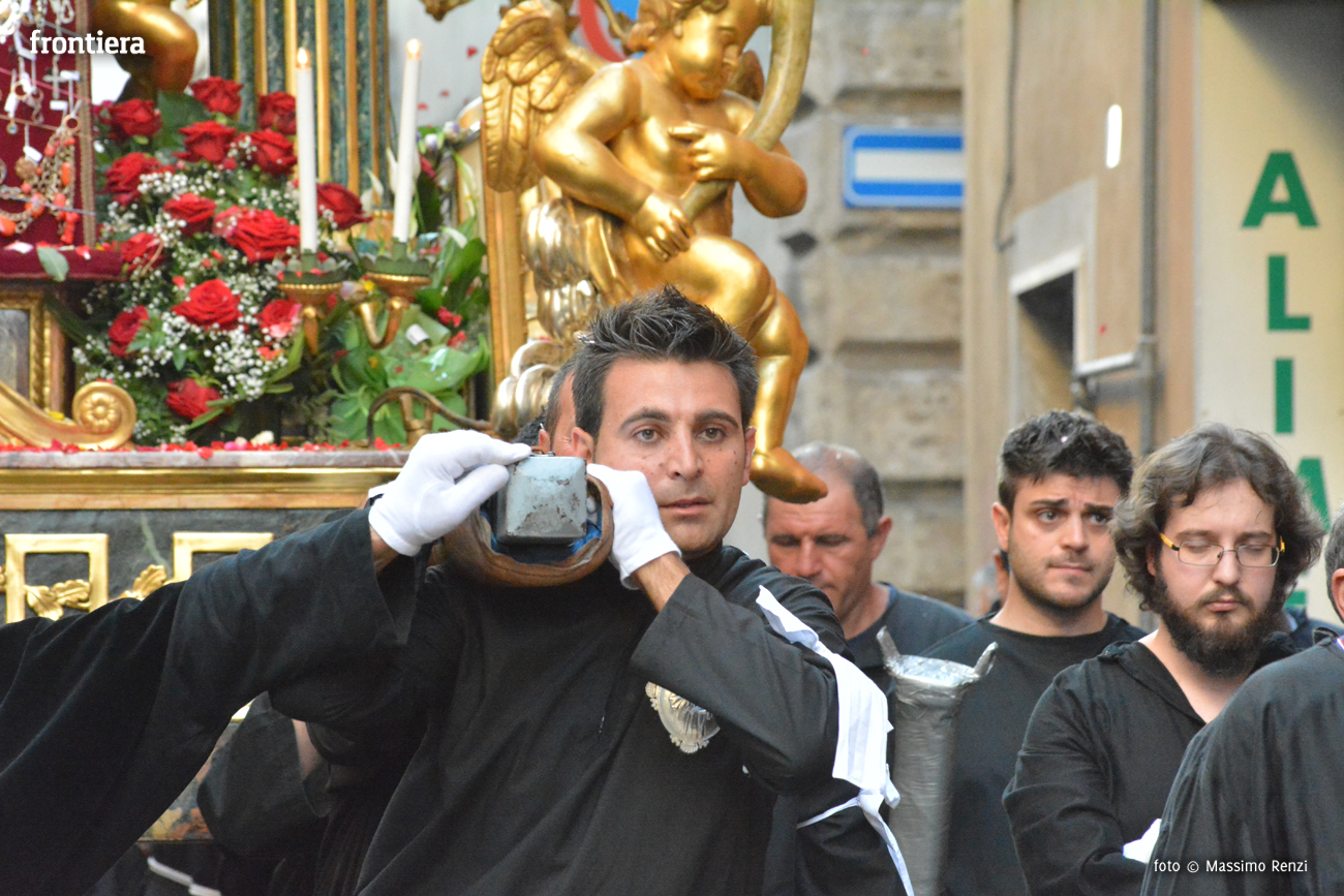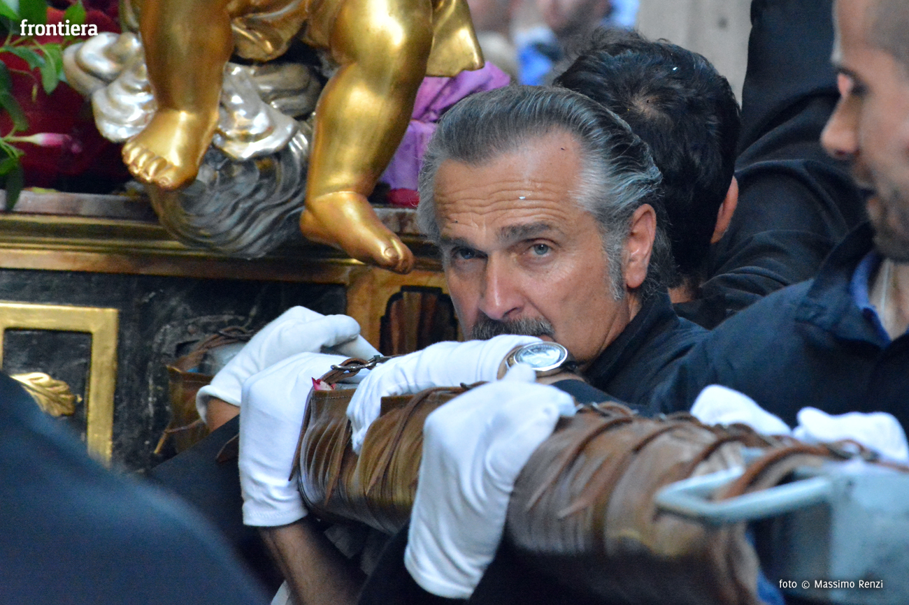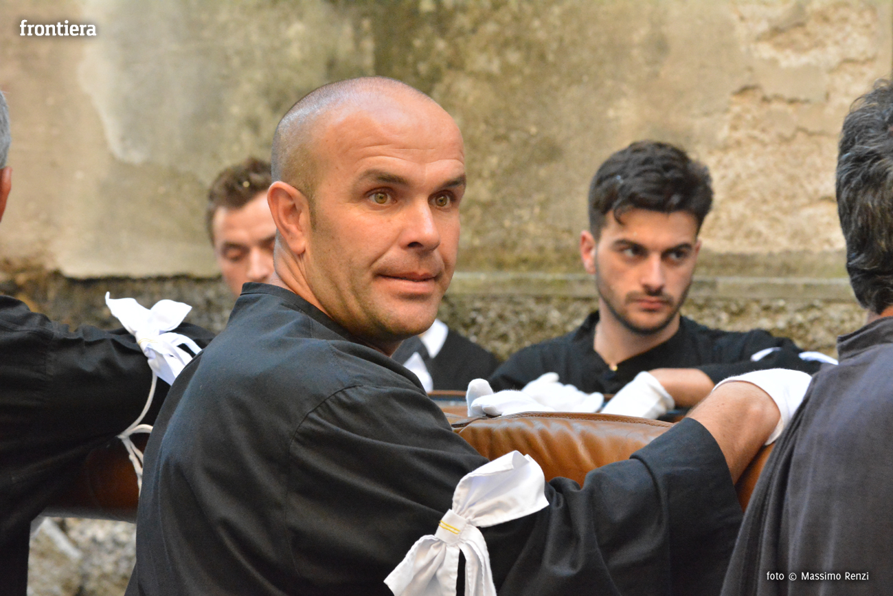 L’impressione è che quest’anno la processione dei ceri, pur affollata come di consueto, sia stata più rapida che negli anni passati. Ciò non ha certamente lenito la fatica dei portatori, ai quali semmai va ascritto il merito di questa riduzione dei tempi. Guidati dal capomacchina Giovanni Flammini, i “fratelli”, i cui nomi sono stati estratti nel chiostro del Liceo Scientifico nella serata del 25 giugno, si sono alternati nel trasporto della pesante immagine del santo per più di quattro ore, fino a quando la statua non ha fatto ritorno a San Francesco per l’allocuzione finale del vescovo, la benedizione conclusiva e il riposizionamento della “macchina” nella sua sede dietro l’altare maggiore della chiesa dedicata al Poverello d’Assisi.