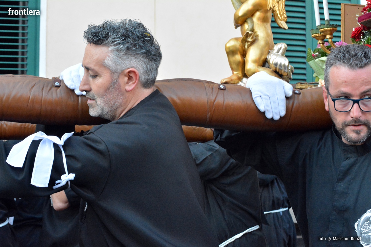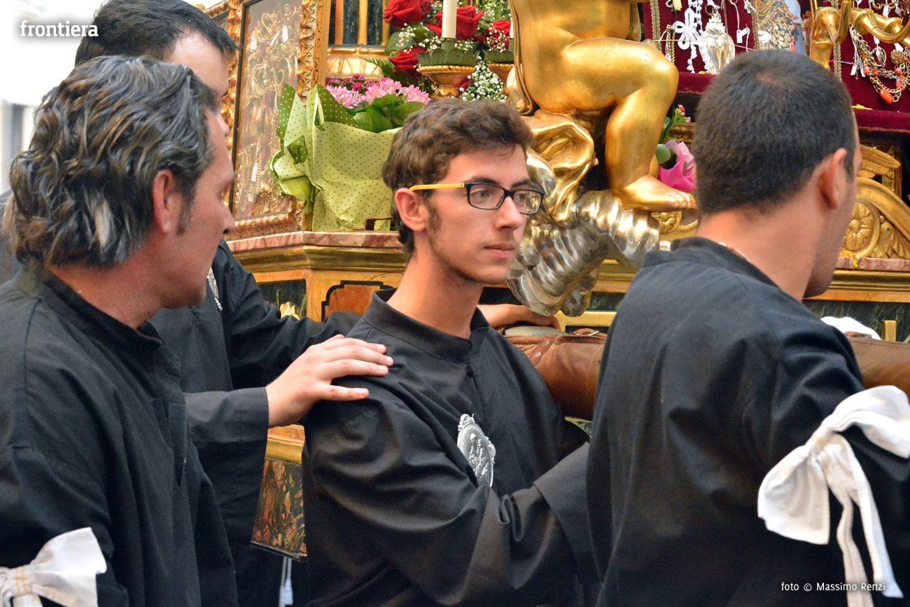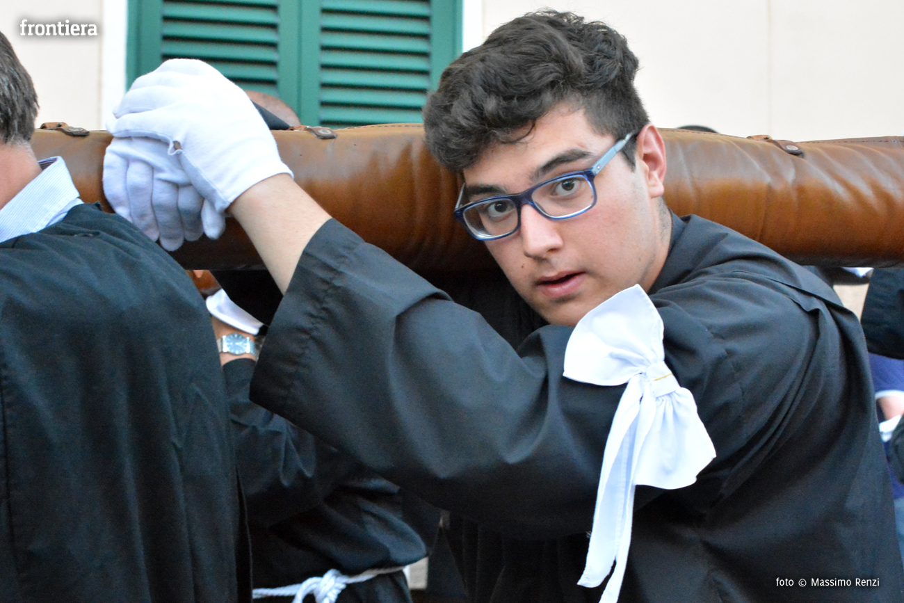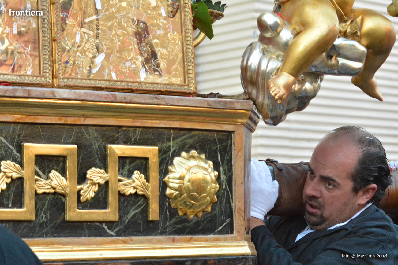 L’impressione è che quest’anno la processione dei ceri, pur affollata come di consueto, sia stata più rapida che negli anni passati. Ciò non ha certamente lenito la fatica dei portatori, ai quali semmai va ascritto il merito di questa riduzione dei tempi. Guidati dal capomacchina Giovanni Flammini, i “fratelli”, i cui nomi sono stati estratti nel chiostro del Liceo Scientifico nella serata del 25 giugno, si sono alternati nel trasporto della pesante immagine del santo per più di quattro ore, fino a quando la statua non ha fatto ritorno a San Francesco per l’allocuzione finale del vescovo, la benedizione conclusiva e il riposizionamento della “macchina” nella sua sede dietro l’altare maggiore della chiesa dedicata al Poverello d’Assisi.
