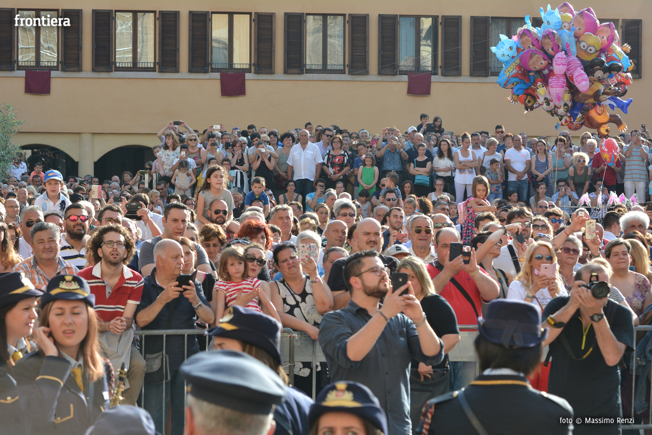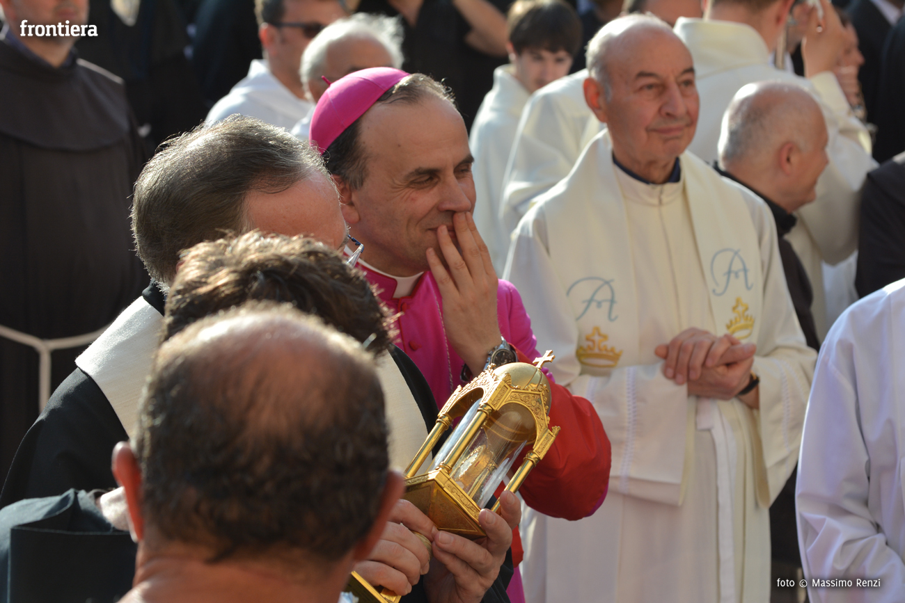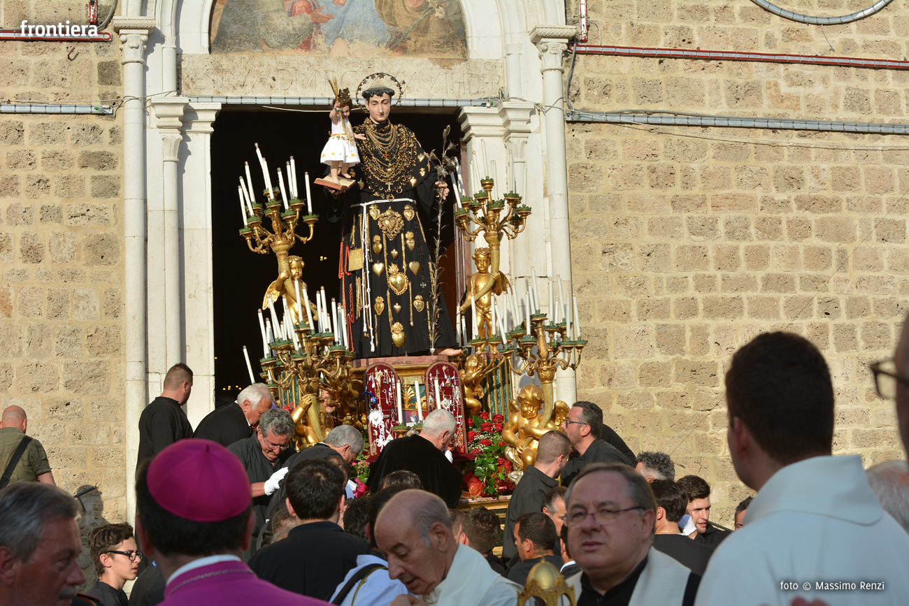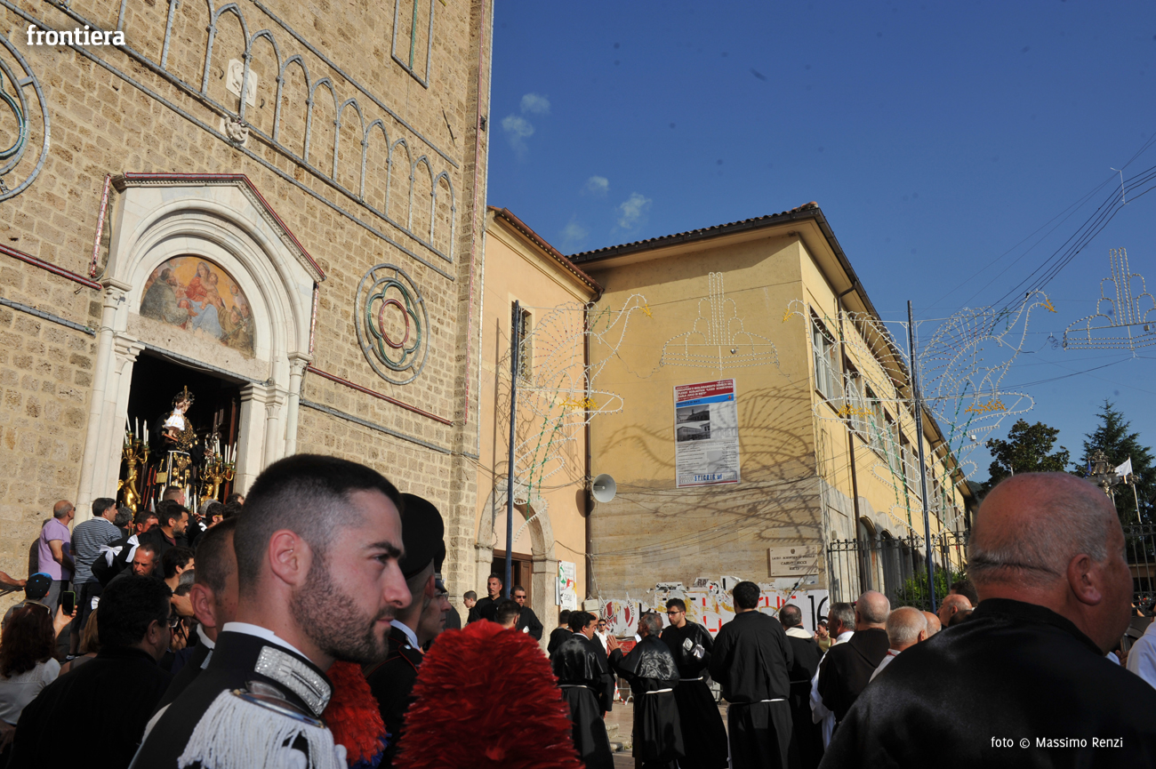 All’uscita della statua di sant’Antonio dalla sua “casa”, la monumentale chiesa di San Francesco, i reatini assistono sempre numerosi. Anche quest’anno non ha fatto eccezione. La comparsa della macchina sulla soglia del tempio è stata salutata dai consueti applausi scroscianti e dall’altrettanto tradizionale sparo di mortaretti e di colpi oscuri.