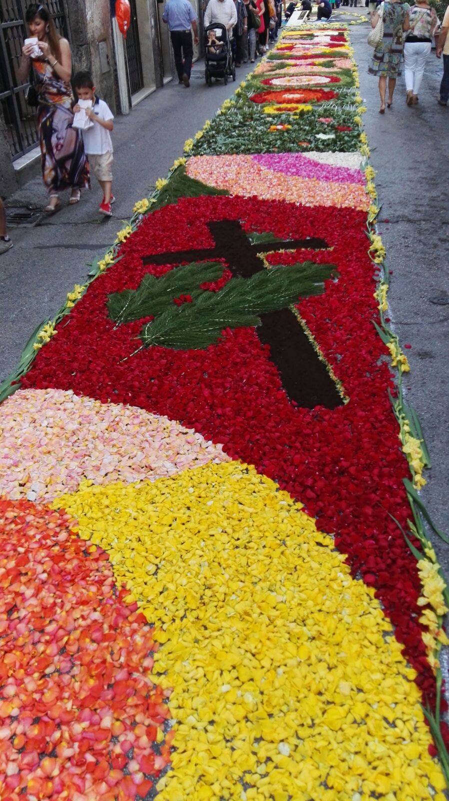Quello che avverti è la spinta creativa che sottende l’evento: la fede, anche quella apparentemente più elementare e genuina è una provocazione culturale, una visione umanissima delle cose. Ecco perché una città in fiore è viva, a dispetto delle tante rappresentazioni in cui le nostre parole vorrebbero racchiuderla.