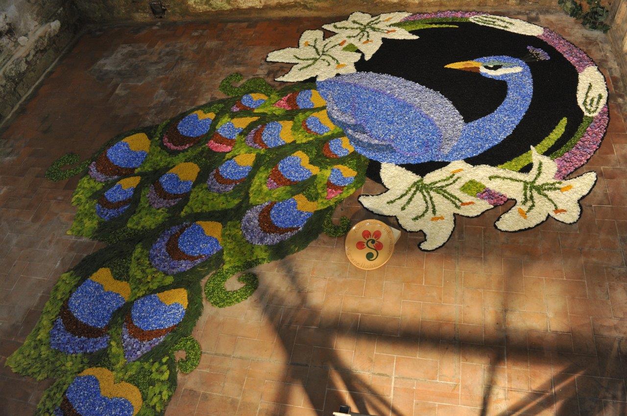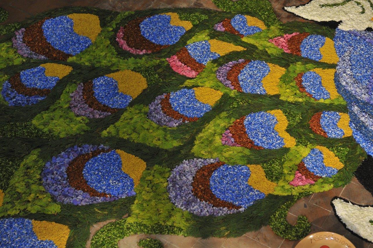 I petali dell’angelo sono dei maestri infioratori di Castelraimondo, città natale del nostro. Partiamo da qui per raccontare il perché dell’infiorare, arte popolare che associa al culto la devozione per il bello. Poco conta che sia da tappeto ai passi oranti dei fedeli o l’arazzo cucito ad arte dagli ospiti della Confraternita del Cristo Agonizzante di Artena, il piumaggio arabbeggiante del pavone che ti si offre nel pavimento della Chiesa di San Francesco o il Corpus Domini deposto a Santa Maria.