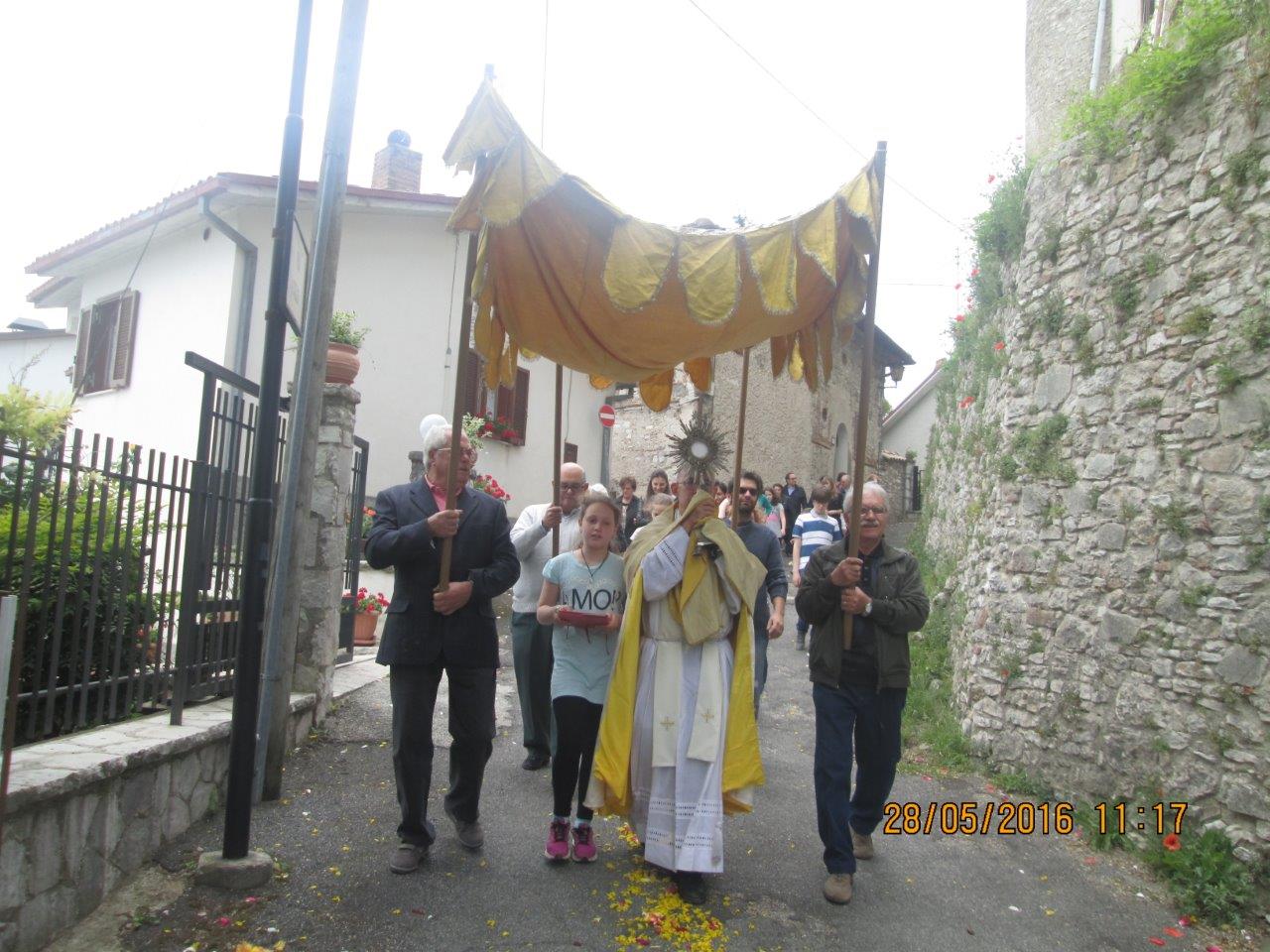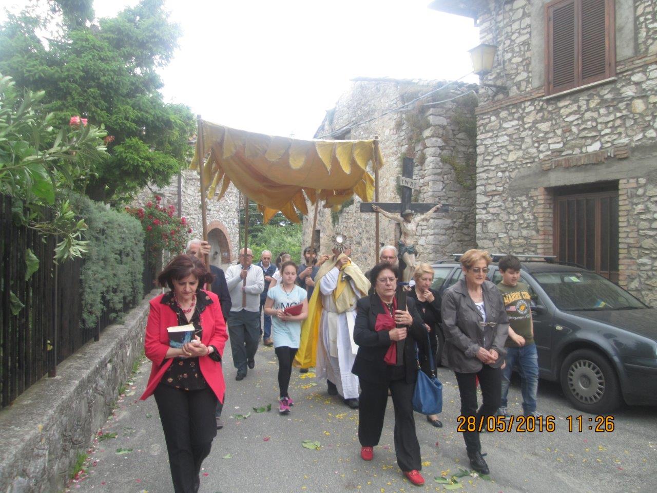 Alla celebrazione eucaristica è seguita una processione con il Santissimo Sacramento, che si è snodata lungo le vie della Frazione infiorate dai parrocchiani e con la recita del S. Rosario e il canto di inni eucaristici.