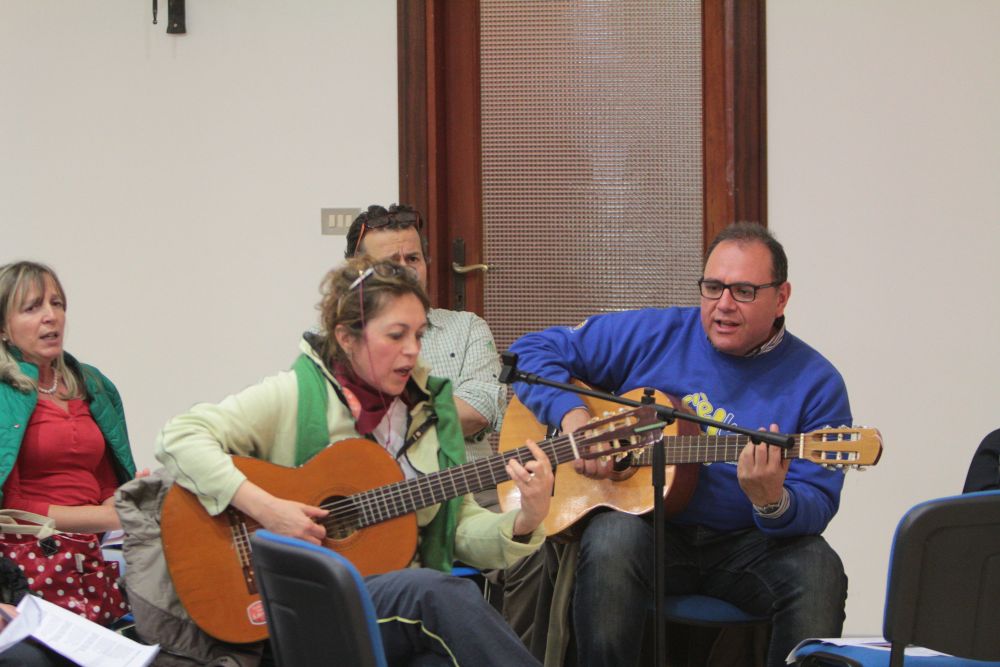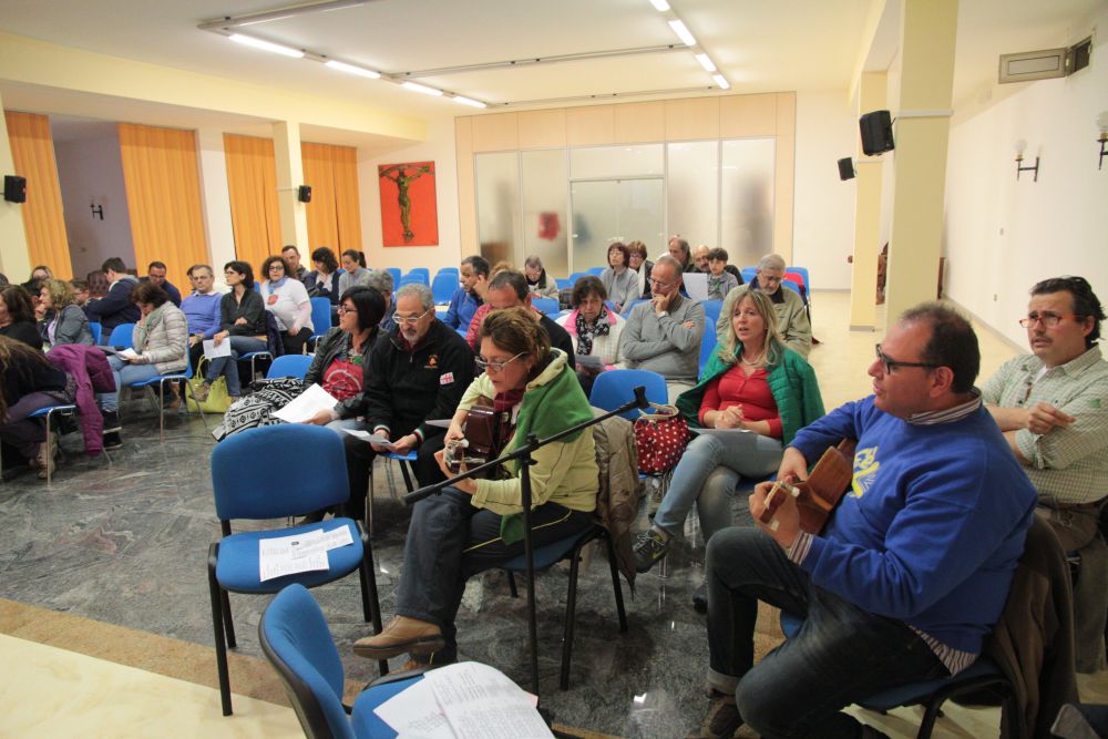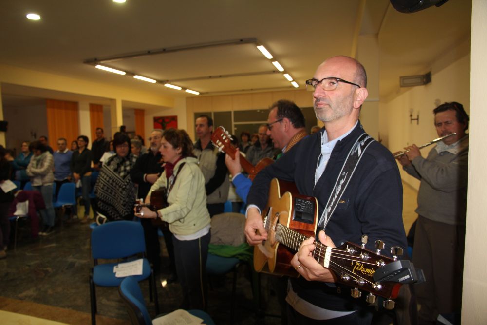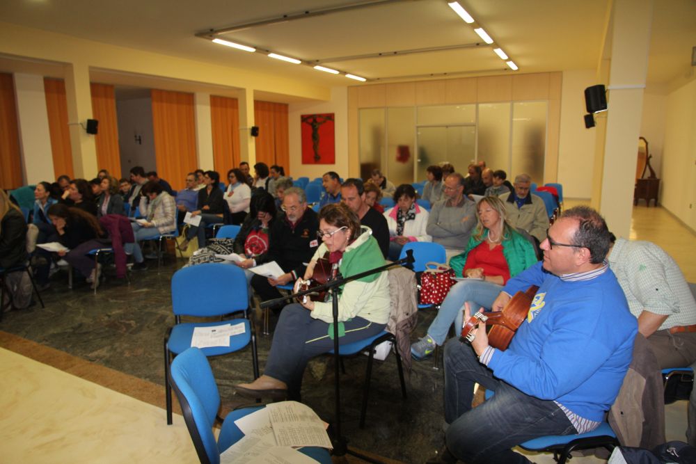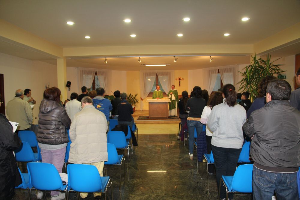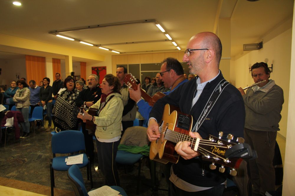 Domenica scorsa, l’inclemenza meteo non ha cancellato la giornata terminillese, ripiegando sul “piano B”: anziché all’aperto sui prati, l’incontro si è svolto nella struttura parrocchiale annessa alla bella chiesa di S. Francesco. Così, nei locali all’ombra del templum pacis, ospiti della Fraternità monastica della Trasfigurazione, si è vissuta la giornata, apertasi con la preghiera mattutina svolta ai piedi dell’urna che custodisce le reliquie del Patrono d’Italia e proseguita con il confronto su quello che è il senso stesso del gruppo, che lo staff organizzativo ha voluto sintetizzare anche in un apposito documento presentato poi al vescovo.