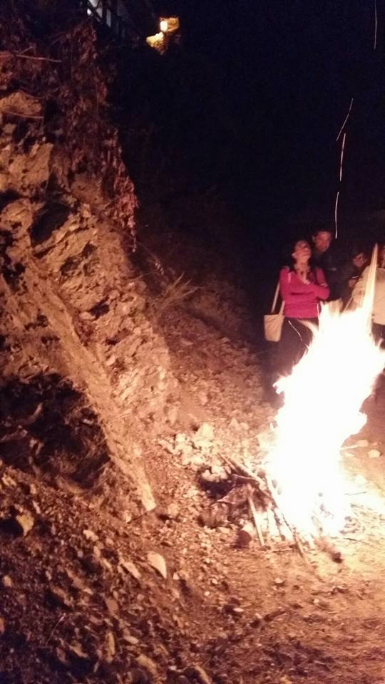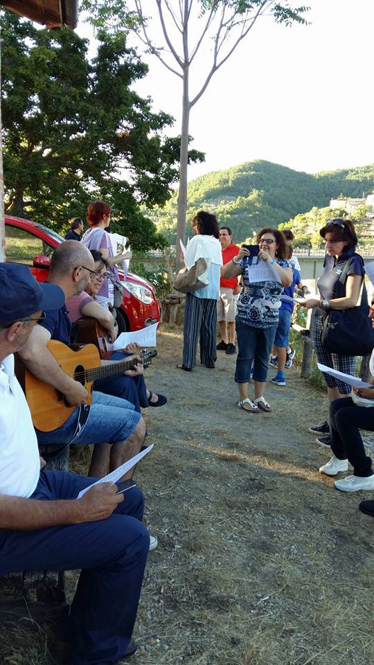Una passeggiata nei dintorni, affacciandosi, sul retro, a quello che era il “prato della pallavolo” con il fontanone, la tettoia, il vialetto della pineta, ora trasformato in parcheggio della casa di riposo ospitata nella struttura. Poi ci si è spostati alla chiesetta di S. Rocco sul ponte, all’esterno della quale si è tenuta insieme la preghiera del Vespro. Quindi tappa in paese, dove era appena iniziata la novena in onore di sant’Anatolia con l’esposizione della sua effigie: una visita alla chiesa parrocchiale, pregando dinanzi alla statua della martire (che la settimana successiva sarà portata in processione fino al santuario che è poi la cappella della Villa dove si svolgevano le preghiere degli indimenticabili campi). Infine, cena insieme al ristorante in riva al lago, ai piedi del paese, e poi, come nella tradizione dei campi, il falò a conclusione della serata, ricordando chi, per la prima volta, non è più fisicamente presente a questo momento: il carissimo don Luigi Bardotti, per trent’anni anima di Villa S. Anatolia, che dal cielo continua a vegliare su questo gruppo di ormai adulti che tengono cara la memoria di un luogo che ha segnato la loro giovinezza e ha lasciato un’impronta per molti di fede, per alcuni di impegno ecclesiale diretto, per tutti di profonda humanitas.