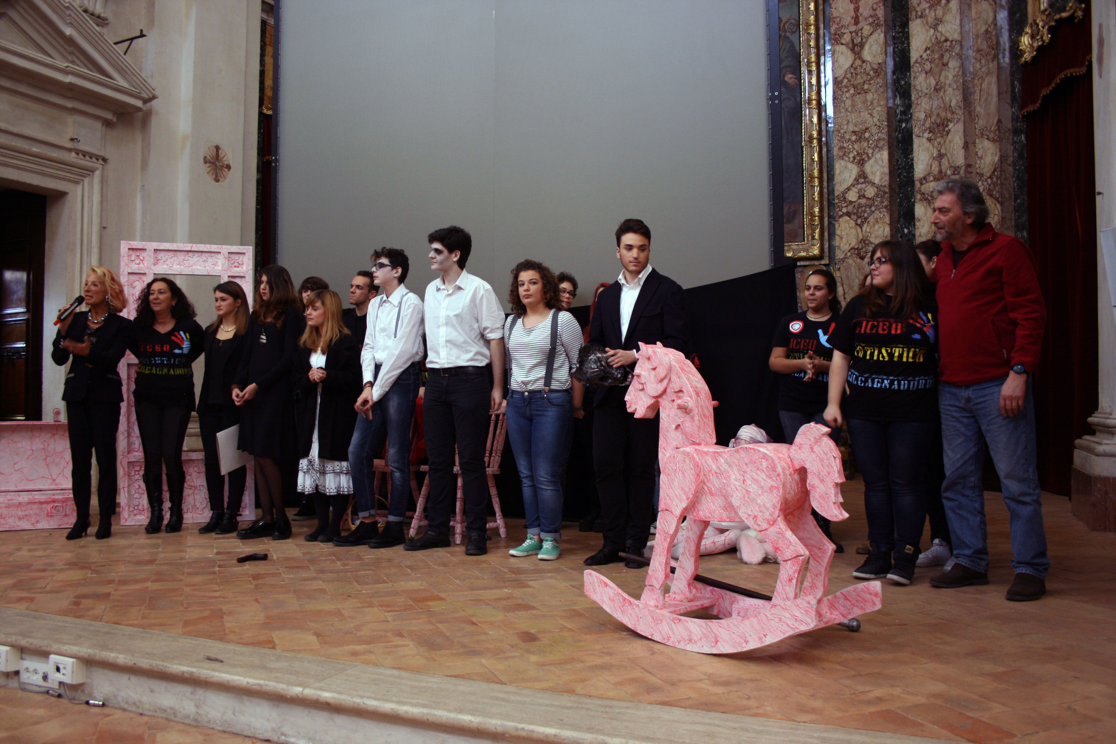 La rappresentazione è stata accompagnata da filmati e video amatoriali realizzati dagli studenti del Liceo ed il tutto è stato accolto da ripetuti applausi del pubblico che riempiva la sala composto oltre che da alunni ed insegnanti del Liceo Artistico, da numerosi alunni della Scuola Media Ricci e da due terze della Scuola Media Pascoli accompagnati dai loro insegnanti sempre attenti alla crescita all’arricchimento del bagaglio culturale dei loro alunni. La sera alcuni ragazzi del laboratorio teatrale accompagnati dai professori coinvolti nell’evento, sono stati invitati da RTR per parlare in diretta dello spettacolo e del loro Liceo Artistico.