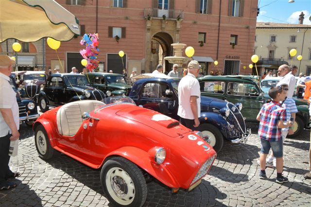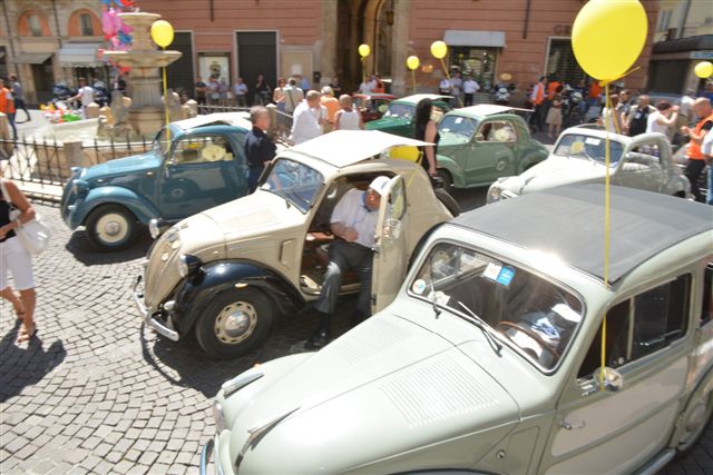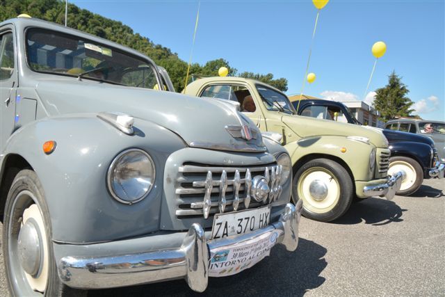 Raduno di auto storiche a Rieti. Tante le Fiat topolino.
