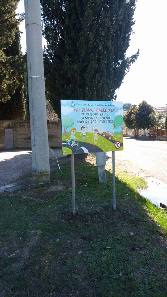Un modo per invitare a rispettare le esigenze di sicurezza non solo dei più piccoli, ma di tutti i cittadini, grazie all’affissione di cartelli dalla grafica amichevole e capace di far riflettere. Un risultato ottenuto «con i mezzi a nostra disposizione e con un po’ di fantasia», per superare la mancanza di particolari strumenti coercitivi da parte delle Amministrazioni nel limitare la velocità nelle strade che attraversano i centri abitati.