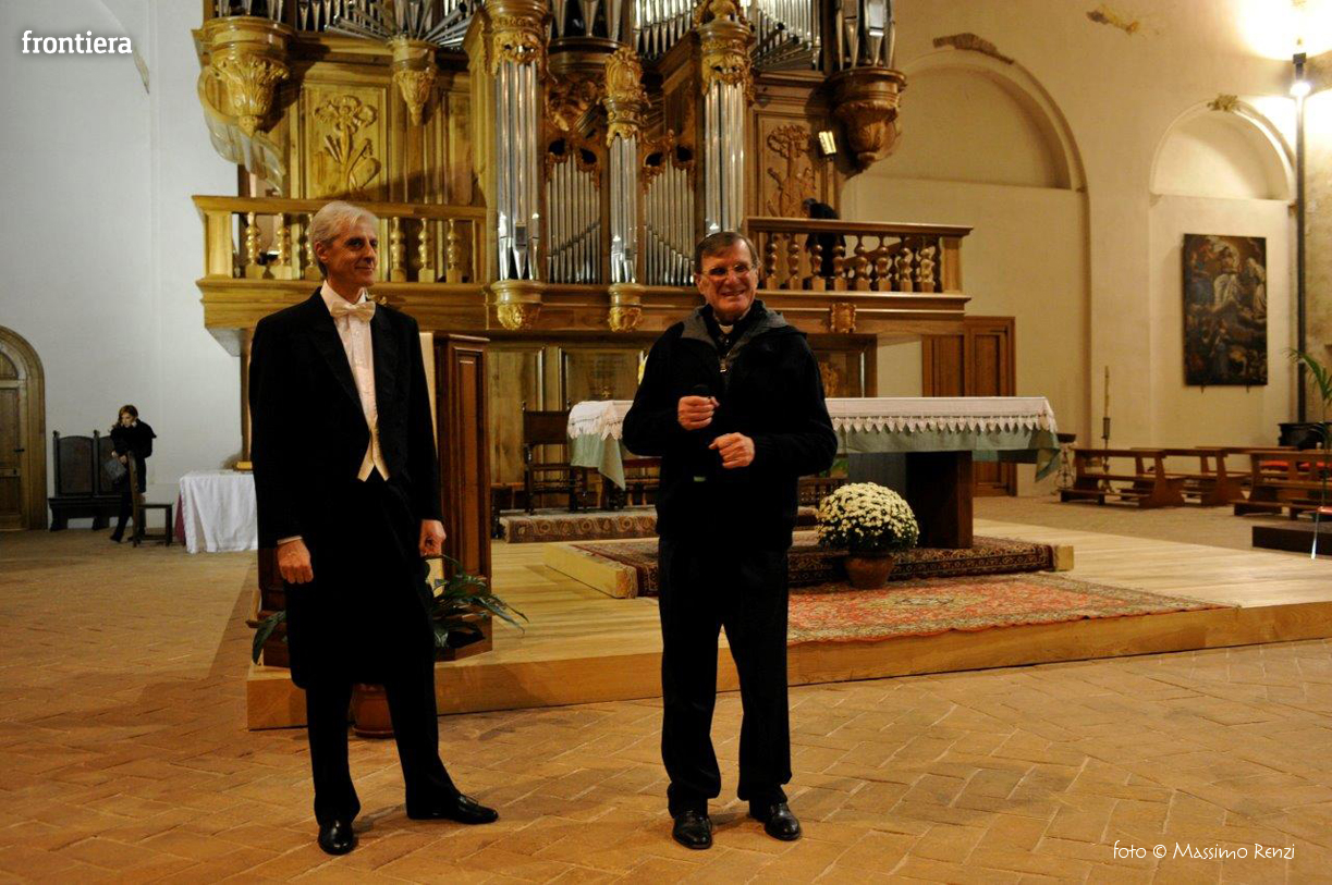 «In tanti suonano l’organo – ha spiegato mons. Luigi Bardotti introducendo la serata – ma pochi suonano il Dom Bedos! Tra questi c’è sicuramente il maestro Rossi» che con la modestia propria dei più grandi ha raccontato subito i propri limiti: le mani, i piedi e la statura un po’ troppo grandi su uno strumento disegnato per gli uomini di un altro tempo. Limiti di cui per la verità nessuno si è accorto, godendo invece una esecuzione non solo impeccabile, ma anche sorprendente, in certi passaggi addirituttura divertente.