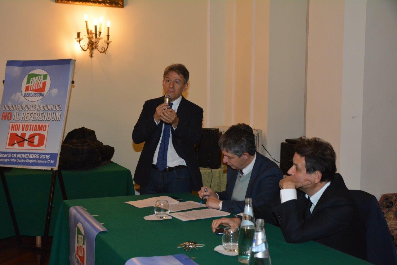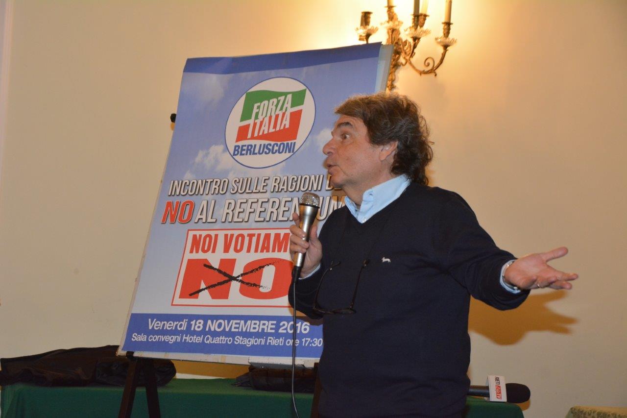 È passato anche a Rieti il tour del presidente dei deputati di Forza Italia, Renato Brunetta, per indicare le ragioni del “no” al Referendum del 4 dicembre. «Stiamo difendendo la democrazia nel nostro Paese» ha affermato il parlamentare. «Nella mia vita non ho mai avuto paura per la democrazia in Italia: oggi ho paura, ho paura per il rischio di una deriva autoritaria, pericolosissima. Renzi da mesi e mesi ha il 60 per cento tra tempo di parola e tempo di notizia in tutti i telegiornali, roba da regime golpista sudamericano».