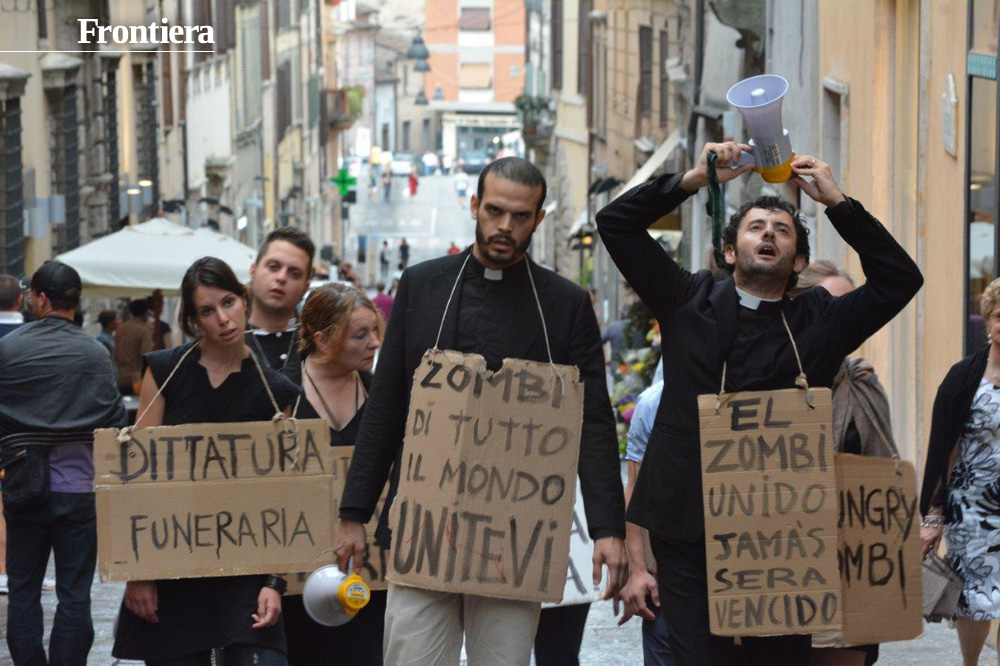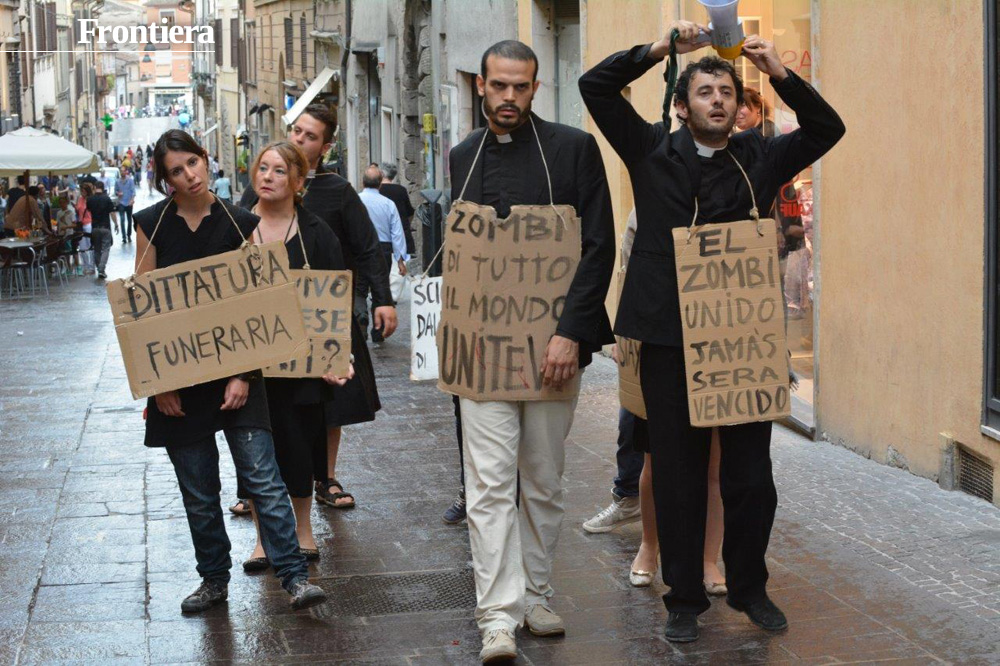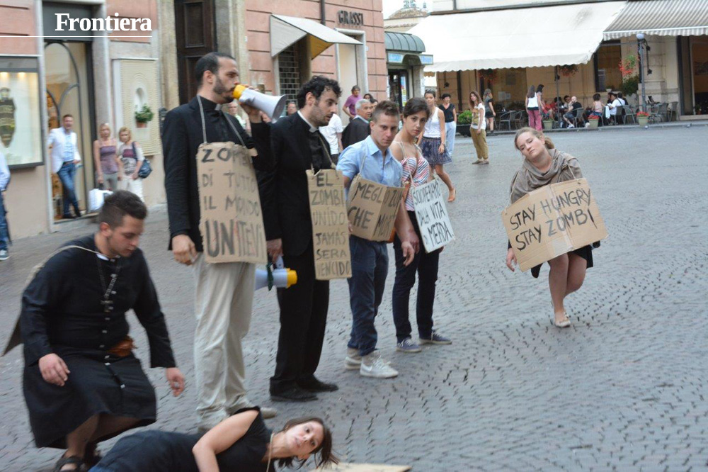 Avvistati diversi zombi nel centro storico di Rieti. «Sai che una novità», dirà qualcuno. Questi però sono diversi: sono “a progetto”. Sono una «sezione di azioni urbane performative e promozionali create sul territorio con attori selezionati mediante il workshop “Corpo Morto”». Il tutto è ovviamente compreso nelle “Invasioni creative” sovvenzionate dalla Regione Lazio.