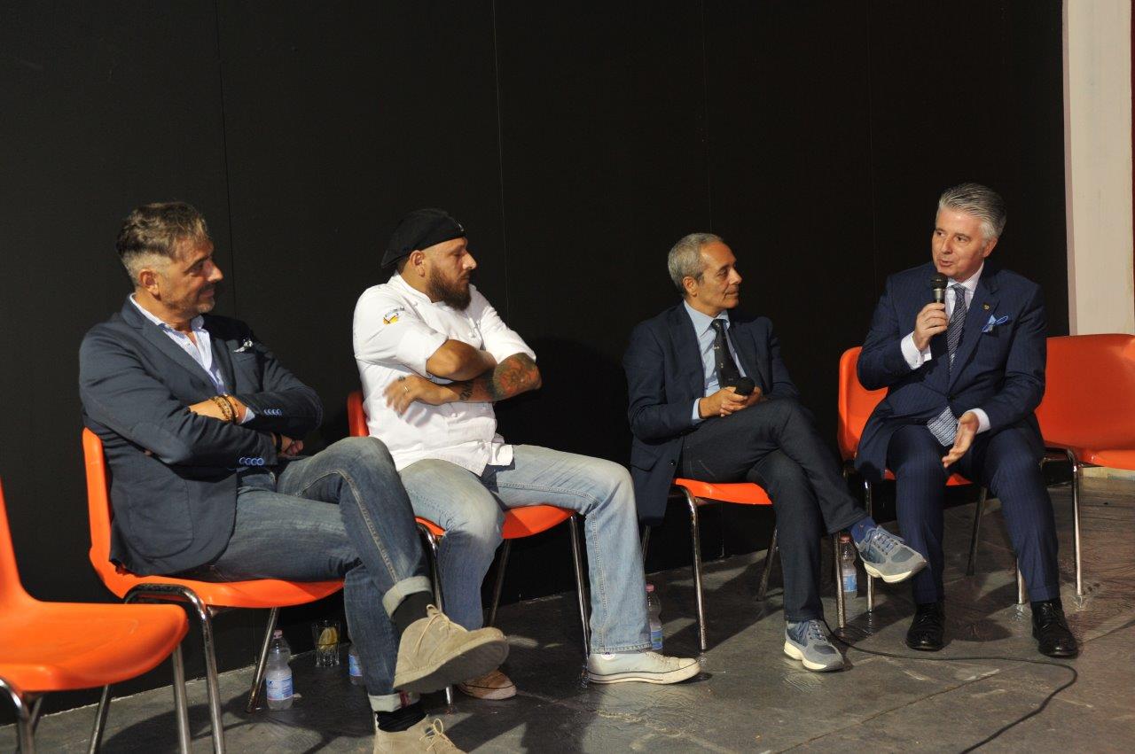 Poi la parola è passata agli esperti, un parterre di primissimo piano che ha tenuto desta l’attenzione del numeroso pubblico presente affrontando il Pianeta Peperoncino da diversi punti di vista. Moderati da Stefano Carboni, esperto enogastronomico, si sono alternati al microfono il professor Ernesto di Renzo, docente presso l’Università di Tor Vergata e antropologo alimentare, che ha ammaliato la platea spiegando come il peperoncino rappresenti una sorta di “prodotto superiore” che ha avuto e continua ad avere un ruolo determinante nella cultura di moltissimi Paesi. Lo chef “primordiale” Francesco Fichera non si è limitato a spiegare l’utilizzo del capsicum in cucina ma ha voluto concedere un excursus storico-geografico, raccontando alcune ricette rarissime dove l’oro rosso della tavola gioca un ruolo fondamentale. Chiusura in grande stile con Alessandro Scorsone, star televisiva di Rai Uno e sommelier di Stato, al quale è spettato il compito di creare il giusto abbinamento tra le ricette proposte e alcuni dei più noti vini italiani ma, soprattutto, di raccontare al pubblico alcuni aneddoti legati al galateo della tavola.