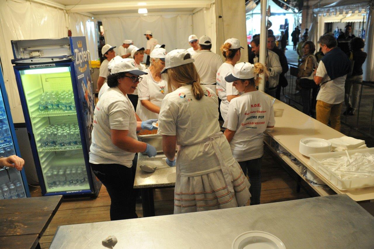 È stata una giornata intensa quella del sabato per Rieti Cuore Piccante. Il tempo è stato clemente e ha consentito il normale svolgimento della serata benefica che ha visto i volontari fare coppia con i cuochi di Cornillo Vecchio, frazione di Amatrice, per una grande “Amatriciana in Piazza” nel segno della solidarietà.
