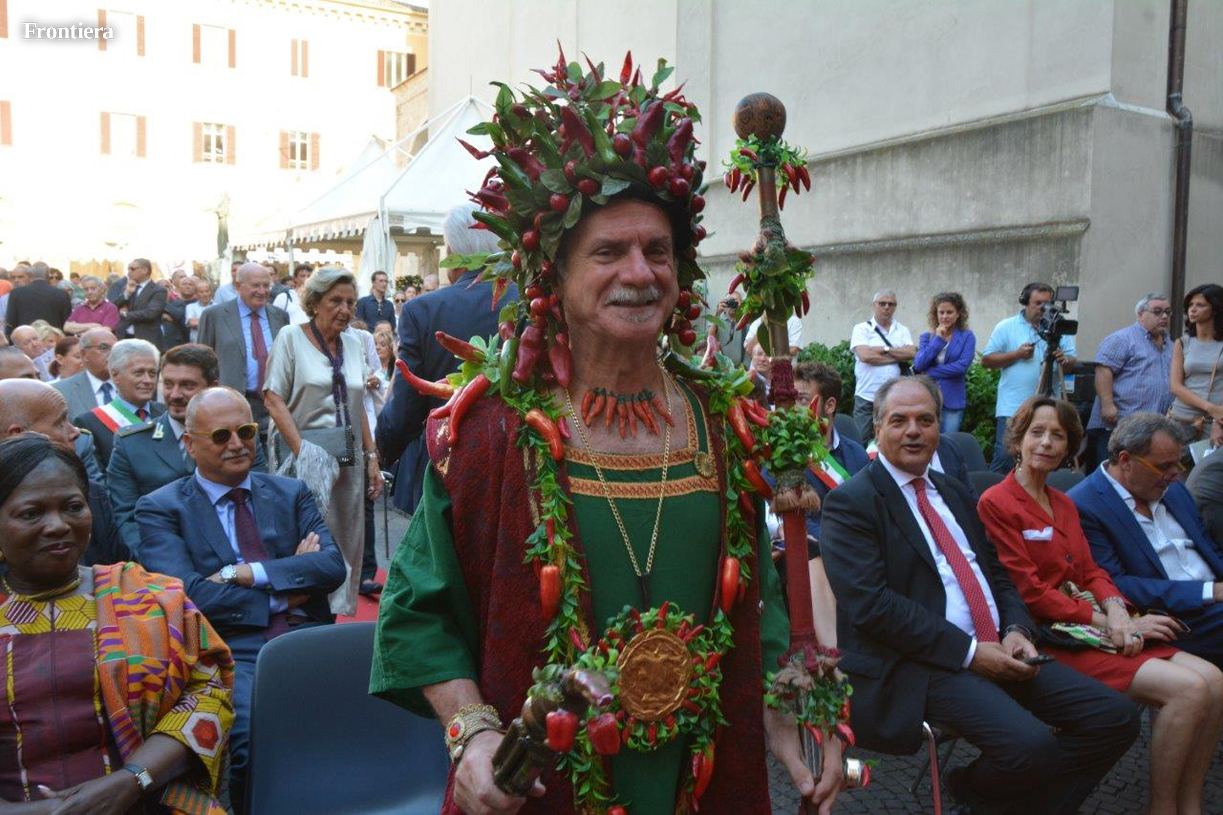 Inaugurazione in pompa magna, con tanto di banda e majorettes, per la quarta Fiera Campionaria Mondiale del Peperoncino. Sulle sedie disposte in piazza Mariano Vittori si contavano numerosi ambasciatori dei Paesi produttori di peperoncino, il sottosegretario all’Agricoltura Giuseppe Castiglione in rappresentanza del Governo, il Prefetto Chiara Marolla, l’ideatore della kermesse Guglielmo Rositani, gli onorevoli Melilli e Pastorelli, autorità civili e militari, e molte più fasce da sindaco di quelle impegnate il giorno precedente nell’assemblea sulla sanità.