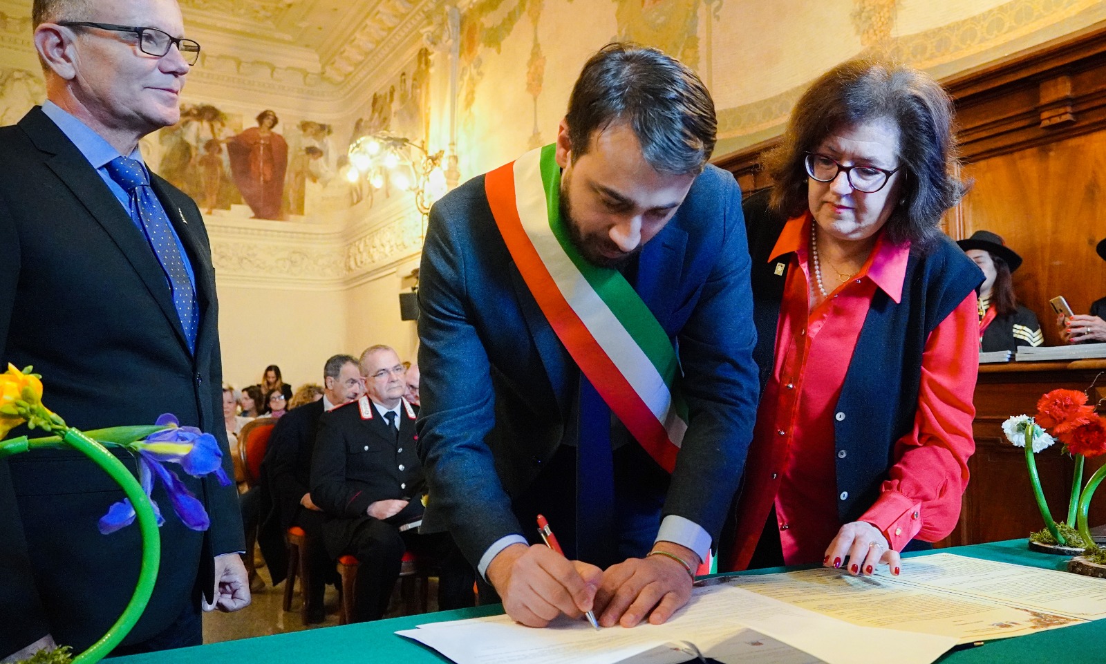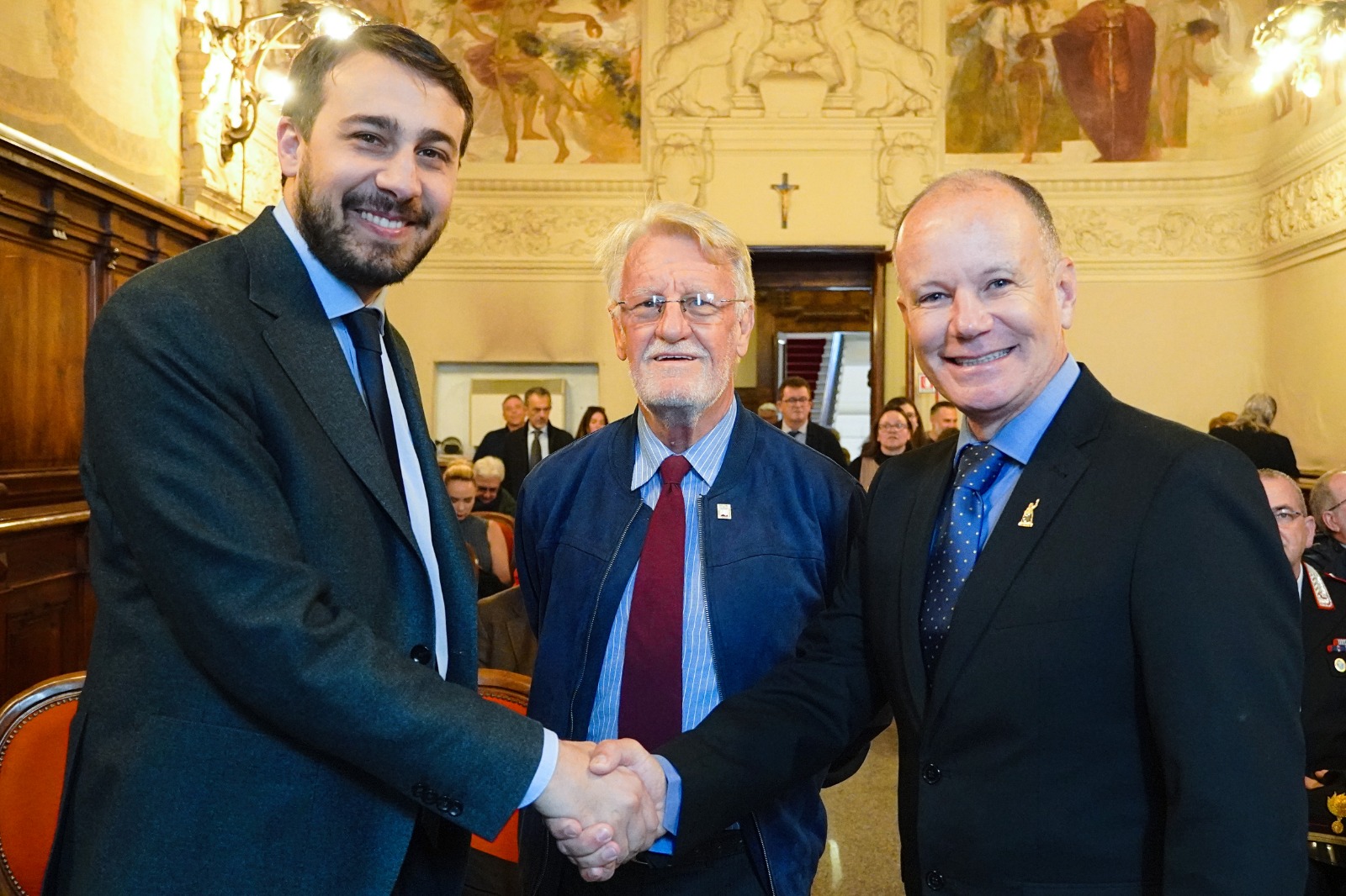 Della folta delegazione fanno parte, tra gli altri, Samir Azmi Ibrahim Muhammao Ahmad Sindaco di Laguna, João Cidnei da Silva Sindaco della città di Anita Garibaldi e rappresentante del Governatore dello stato di Santa Catarina, Claudio Pereira dos Santos Presidente del Consiglio Comunale della città di Anita Garibaldi, Moisés Batista Pedone de Souza Sindaco della città di Mostardas, Rio Grande do Sul, Adilcio Cadorin ex Sindaco di Laguna, Avvocato e Direttore dell’Istituto CulturAnita nella città di Laguna, Rosimari Glatz Rettrice del Centro Universitario – UNIFEBE nella città di Brusque, Santa Catarina, Milton Luiz Cavalcanti, Presidente dell’Istituto Culturale Anita Garibaldi della città di Laguna, Santa Catarina,