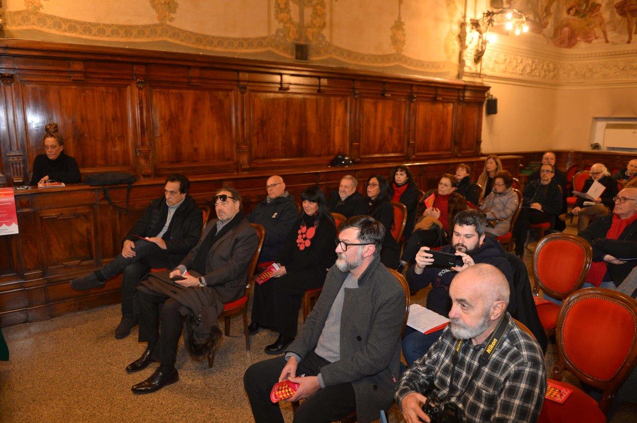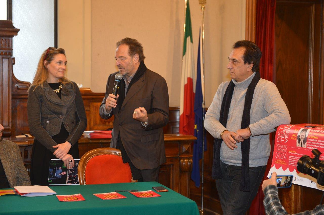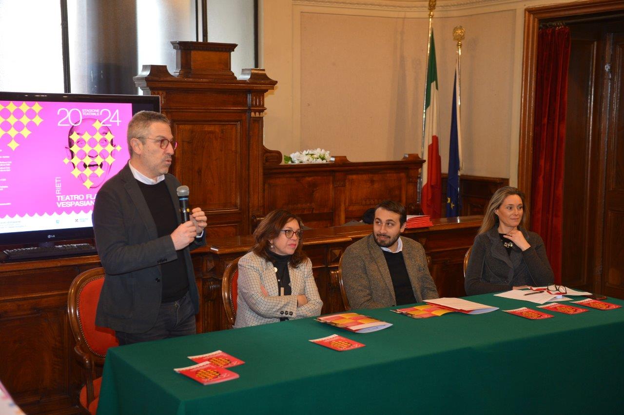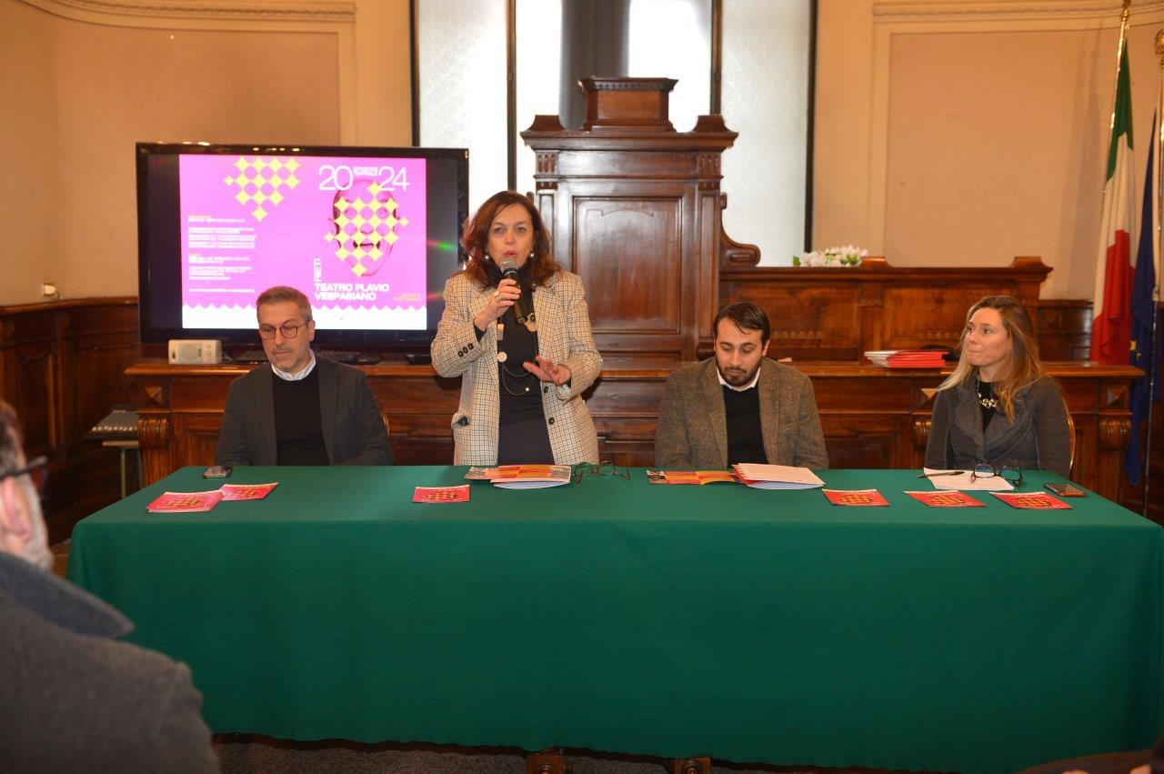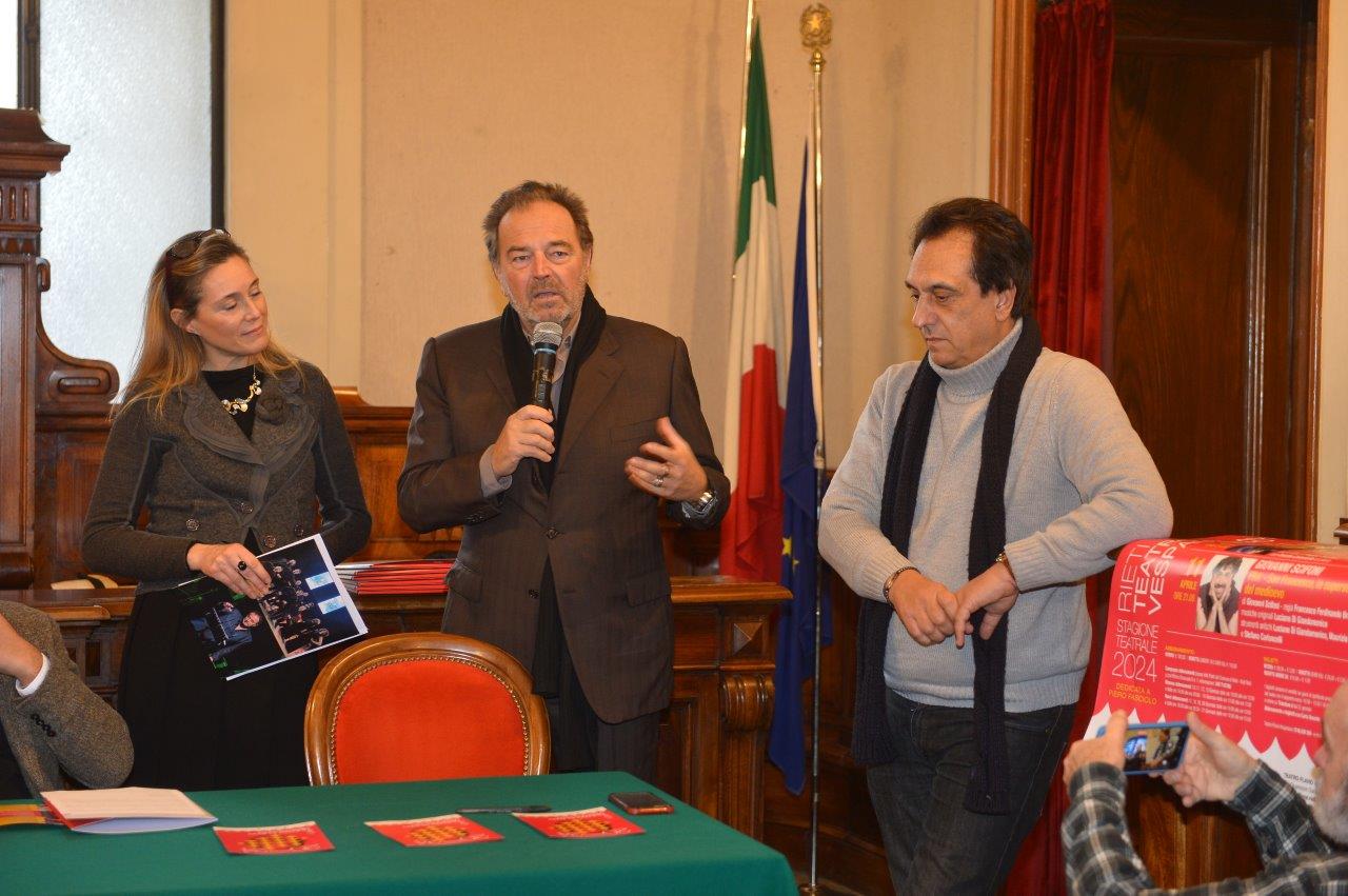 Questa mattina la Sala Consiliare del Comune di Rieti ha ospitato la presentazione dei sei spettacoli che comporranno la stagione 2024 del Teatro Flavio Vespasiano e che verrà dedicata alla memoria di Piero Fasciolo, per anni anima del teatro cittadino e recentemente scomparso. La programmazione è stata introdotta dall’Assessore alla Cultura Letizia Rosati ed illustrata dall’Amministratore Delegato di ATCL Luca Fornari e dalla Direttrice Artistica Isabella Di Cola. Presente anche l’attore Sebastiano Somma, che con l’autore Liberato Santarpino porteranno in scena “Lucio incontra Lucio”, un incontro immaginifico tra musica e azioni teatrali di Lucio Battisti con Lucio Dalla. Non è potuto essere presente perché impegnato in tournée Giovanni Scifoni, che ha voluto inviare un video-messaggio in cui ha introdotto il suo spettacolo “Fra’ San Francesco, la superstar del medioevo”. A chiudere il Sindaco Daniele Sinibaldi, che ha inquadrato la stagione del Teatro Flavio Vespasiano nell’ambito delle attività culturali rivolte non solo al pubblico reatino, ma a quello nuovo rappresentato dalla comunità di studenti e docenti presenti in città grazie alla presenza del Polo Universitario inter-ateneo di Sapienza e Tuscia.