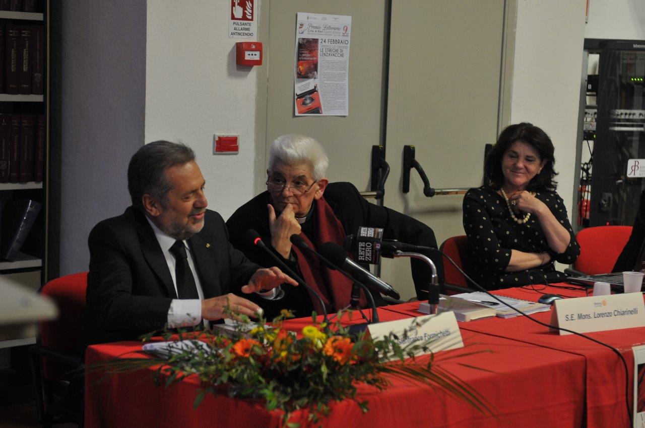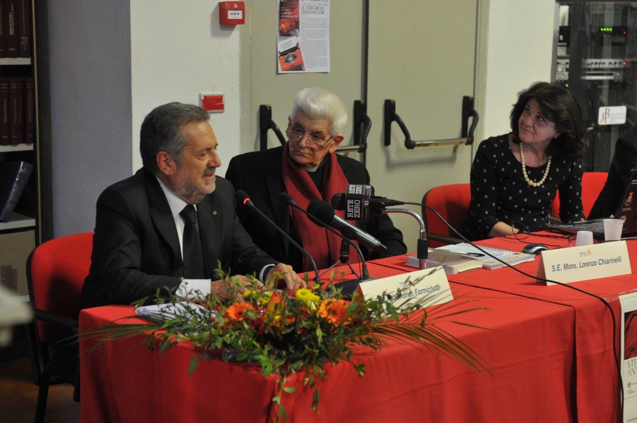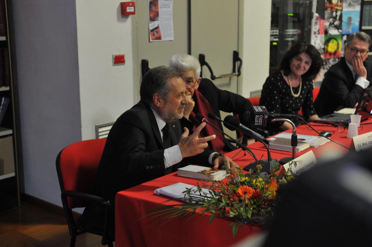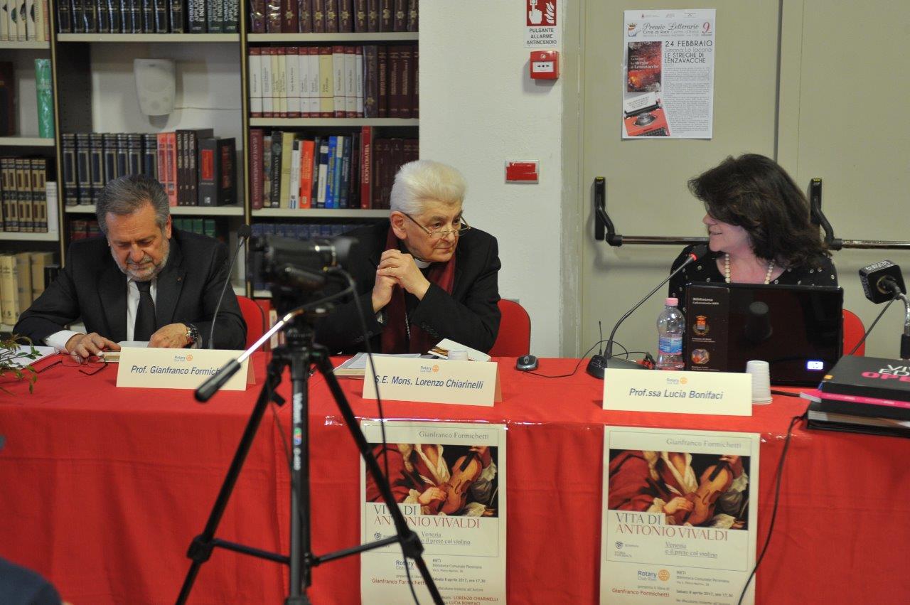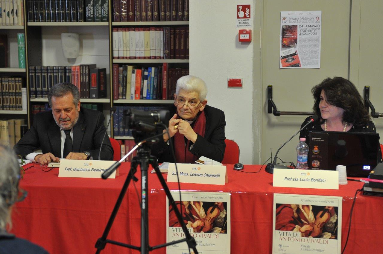 Il cuore della presentazione è stato affidato a mons. Lorenzo Chiarinelli, che non solo ha ripercorso vita, carriera e alterne fortune del prete rosso, ma ha individuato il filo conduttore che lega il libro agli altri lavori di Gianfranco Formichetti: quelli su Campanella e Caravaggio. Si tratta – ha spiegato il vescovo emerito di Viterbo, usando una metafora musicale – di figure che sanno stare «sul rigo», ma nello stesso tempo sanno esprimere qualcosa che sta «sopra o sotto, se non addirittura fuori dal rigo».