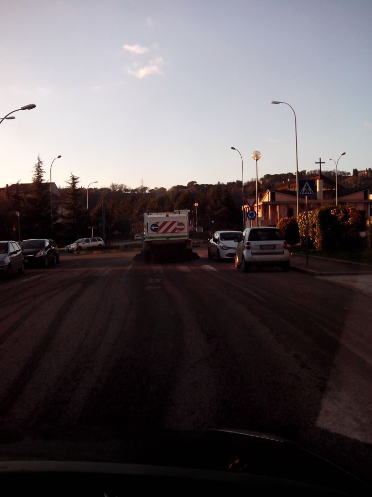 Pensate come possano essere pulite, con la macchina spazzatrice, via San Liberatore, via Di Mezzo, via Terenzio Varrone, via S. Agnese, via Cintia con le auto parcheggiate in linea, e come si possano pulire altre strade con parcheggi a spina. Questo non succede solamente nel centro storico, ma anche nei quartieri periferici, dove gli spazi sono più ampi, ad esempio in via Riposati. Quanta attenzione e quanto impegno devono prestare gli operatori per non causare danni alle auto?