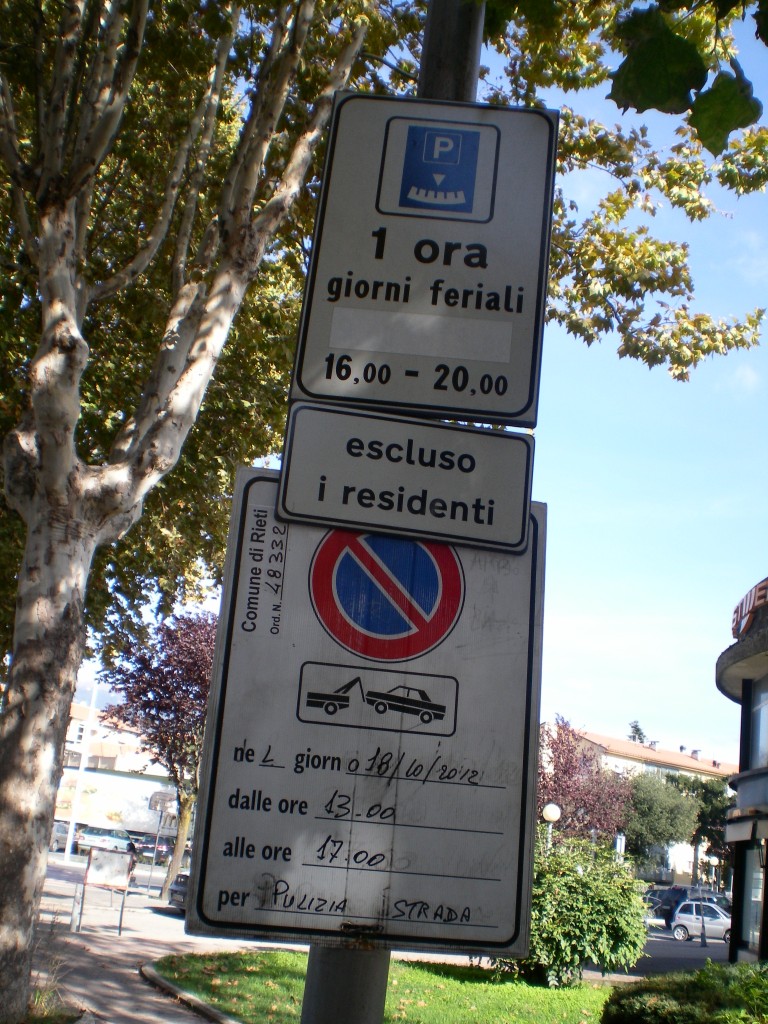 Probabilmente solamente a Rieti non si conosce il segnale di divieto di sosta temporaneo per la pulizia delle strade, in altre città simili come dimensione e come numero di abitanti sono ormai anni che viene usato ed in moltissime città viene indicato anche l’orario in cui si effettuerà la pulizia.