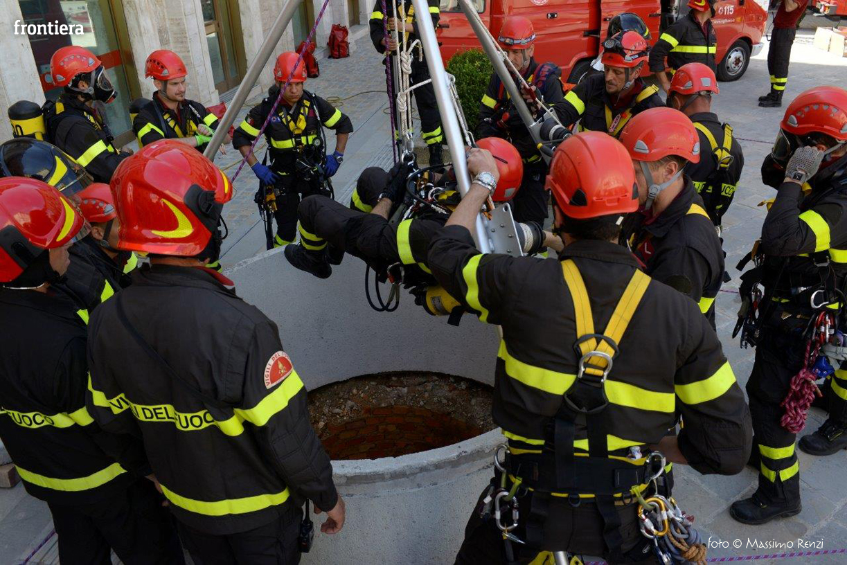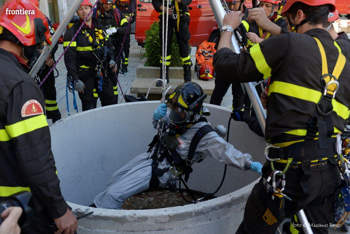 Operazioni di ispezione per il rifugio antiaereo sotto piazza Cesare Battisti e piazza Vittorio Emanuele. Foto © Massimo Renzi.