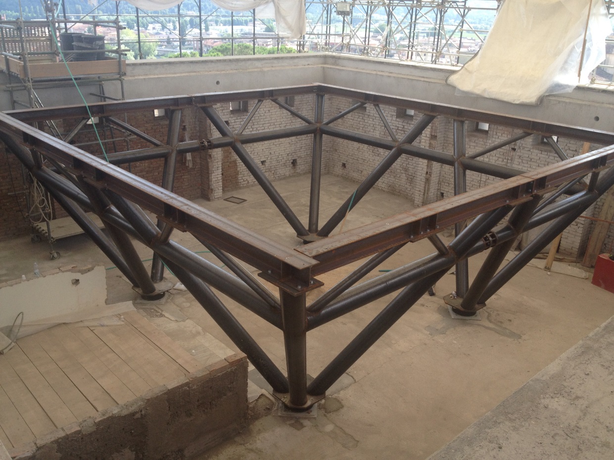 Per mettere in sicurezza la torre comunale è stato utilizzato un “mass damper”, progettato da Cecilia insieme all’Arch. Stefano Spadoni (progettista architettonico dell’Amministrazione comunale di Rieti), che attraverso smorzatori in acciaio e gomma sfrutta la massa del solaio di copertura della torre quale massa antivibrante riducendo consistentemente gli effetti di un eventuale sisma.