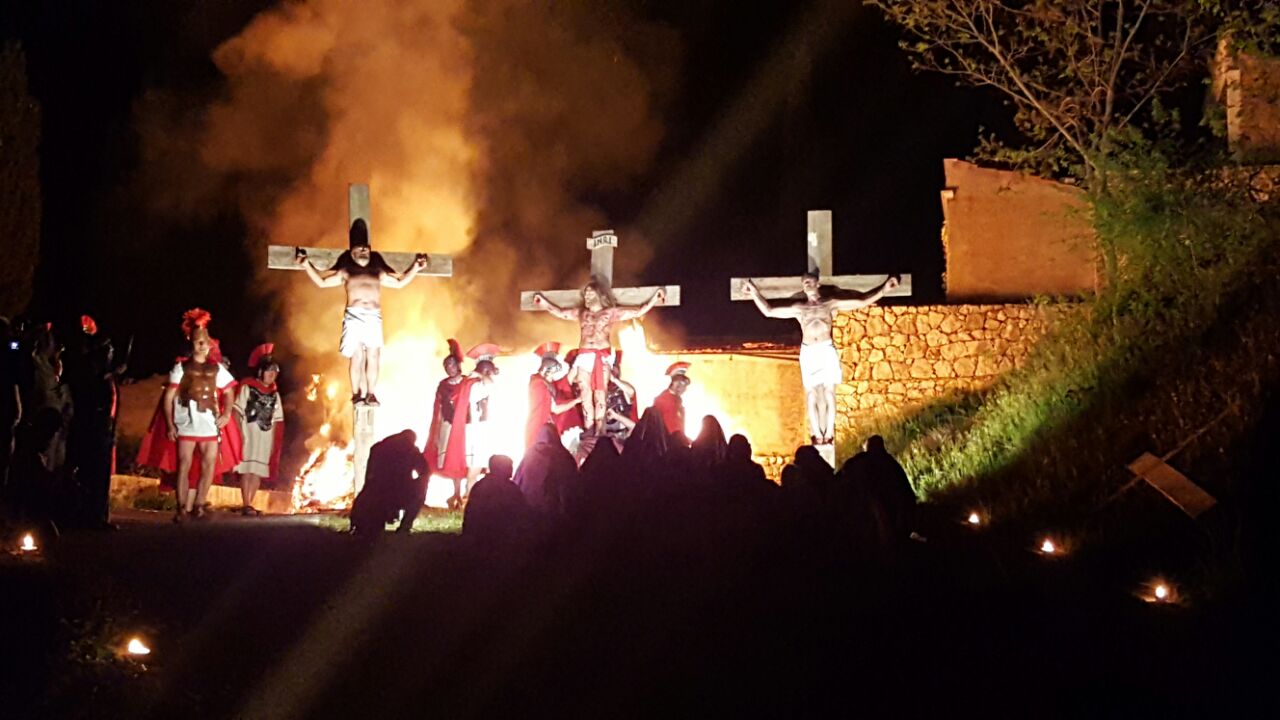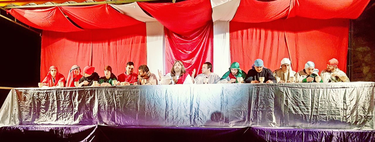 Per il venerdì che precede la Pasqua è stata infatti messa in scena una curata rievocazione vivente della Passione di Cristo, allestita in quattro momenti: l’Ultima cena, l’Orto degli ulivi, Il processo condotto da Pilato e la Crocefissione di Gesù. La rievocazione ha coinvolto tutte le strade del paese, dal piazzale antistante alla chiesa parrocchiale fino al cimitero, adottato come sfondo per la Crocefissione.