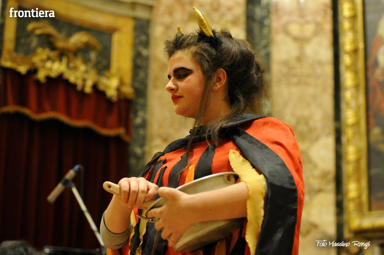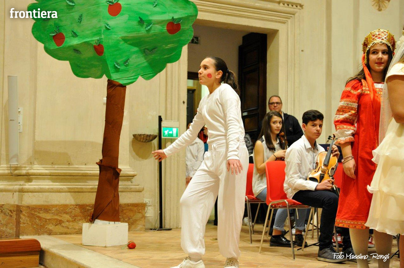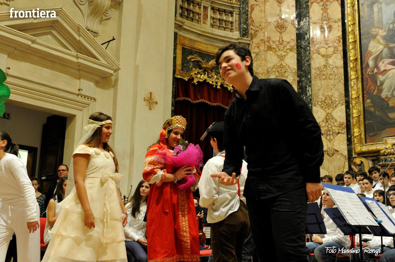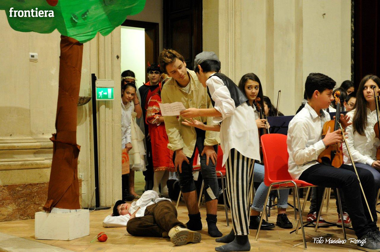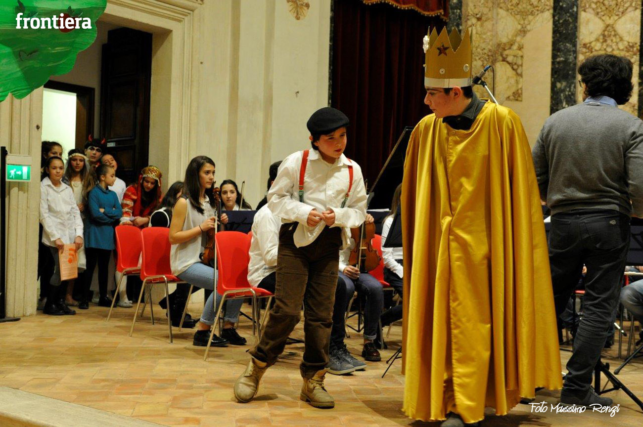 Ce n’erano diversi di loro, insieme ad altri compagni di diverse classi delle medie, a interpretare i personaggi de I capelli del diavolo, rielaborazione (curata dalla professoressa Elisabetta Galassetti) della commedia musicale di Roberto Piumini, basata su una celebre fiaba dei Fratelli Grimm. Ad eseguire le canzoni tra una scena e l’altra, il coro d’istituto formato dai ragazzi delle tre quinte elementari e delle sezioni musicali di prima media (maestro del coro la professoressa Sara Montani), mentre i bravi musici dell’orchestra d’istituto, provenienti da classi musicali seconde e terze preparate dai diversi insegnanti di strumento, accompagnavano il canto a suon di violini, flauti, clarinetti, tastiere e basso, sotto la direzione del professor Ruggero Russi che ha provveduto all’arrangiamento delle partiture. A completare il tutto, i piccolini della scuola dell’infanzia con le loro coreografie e le rime di apertura e chiusura, per concludere con la canzone di augurio natalizio finale.