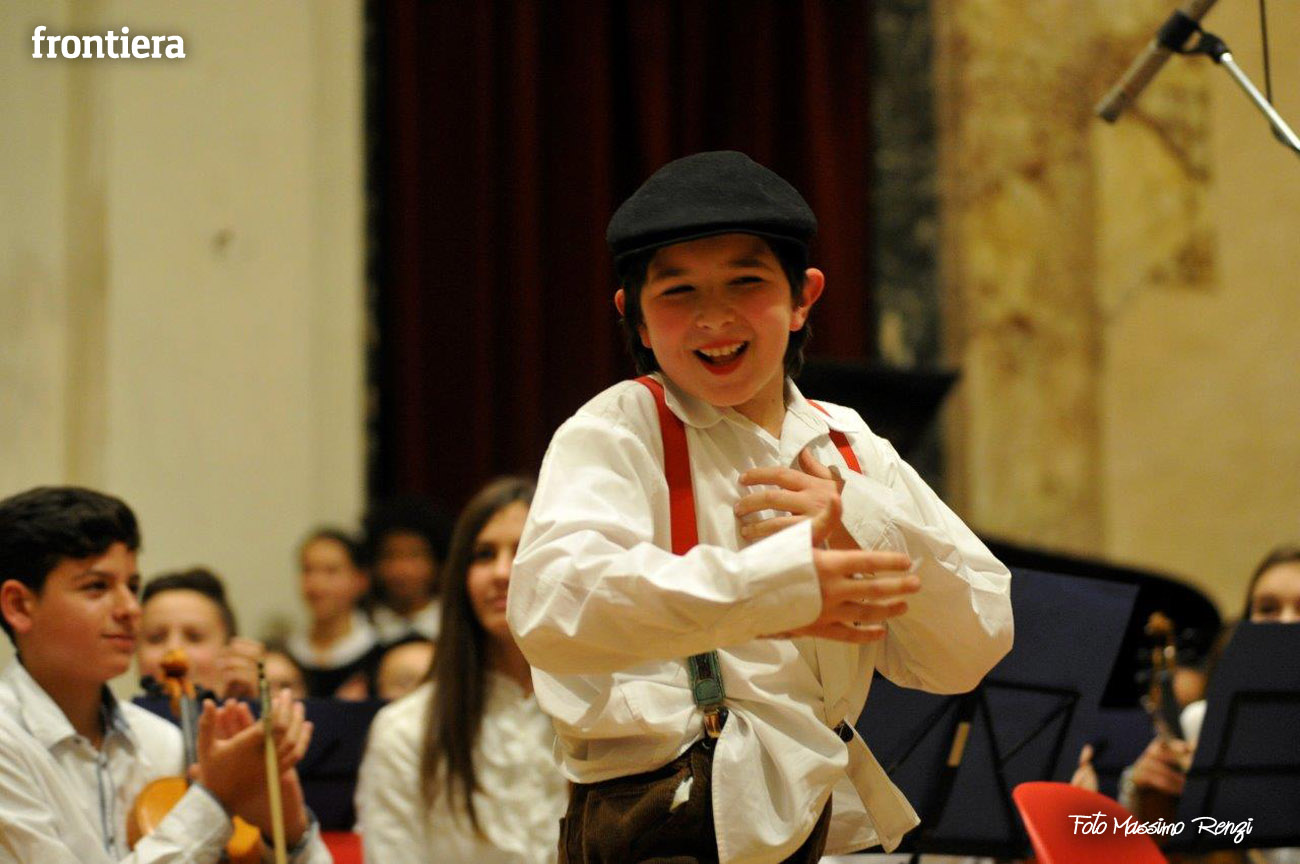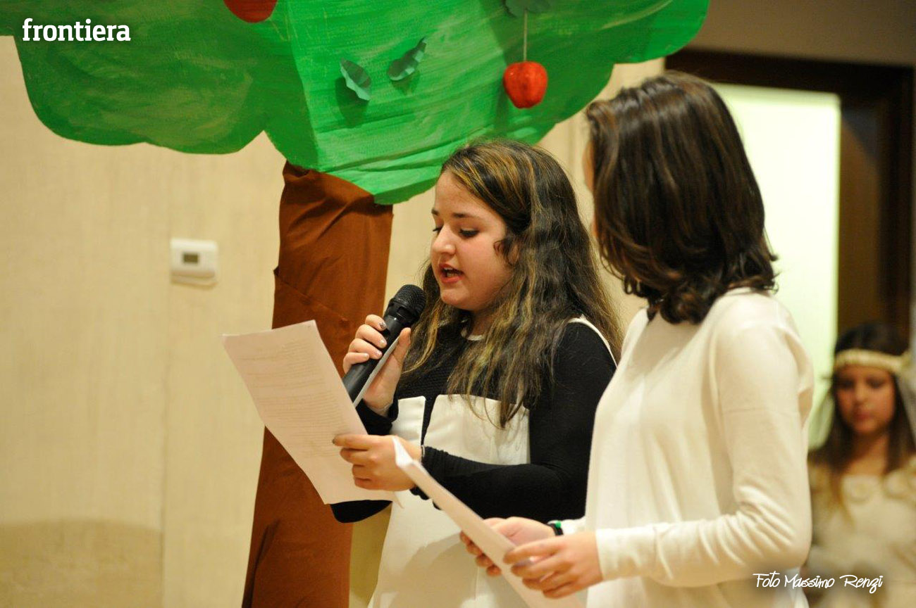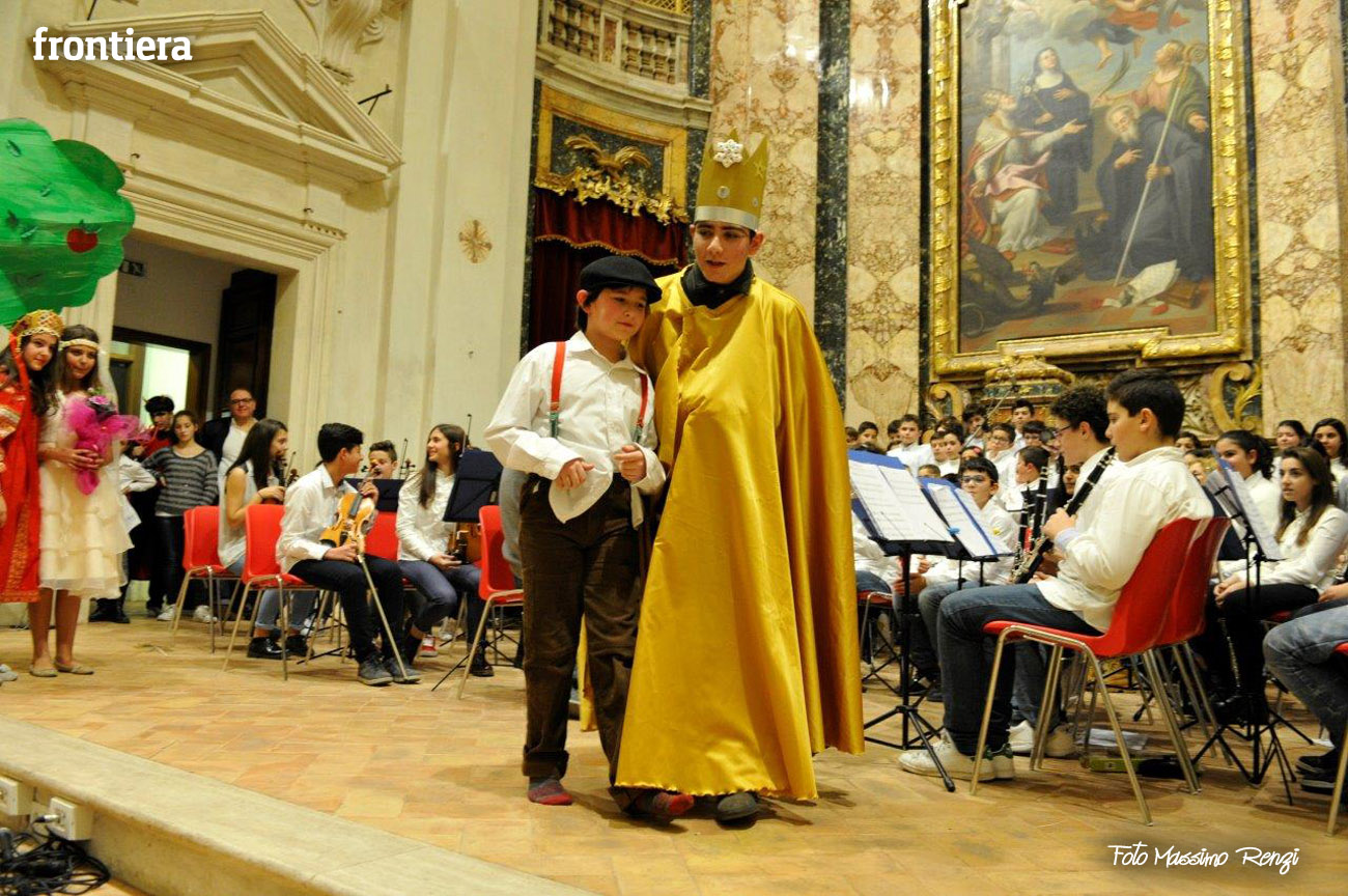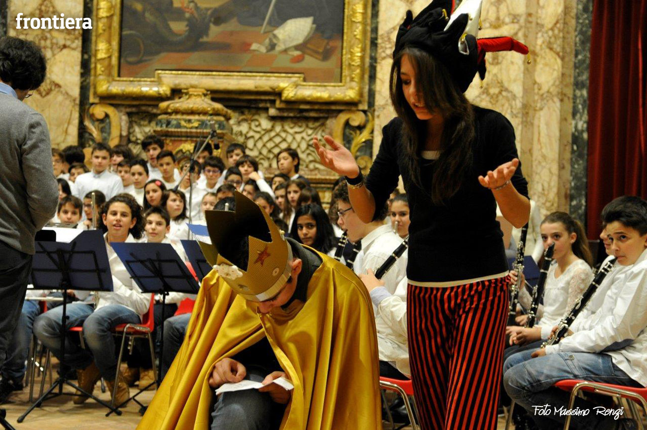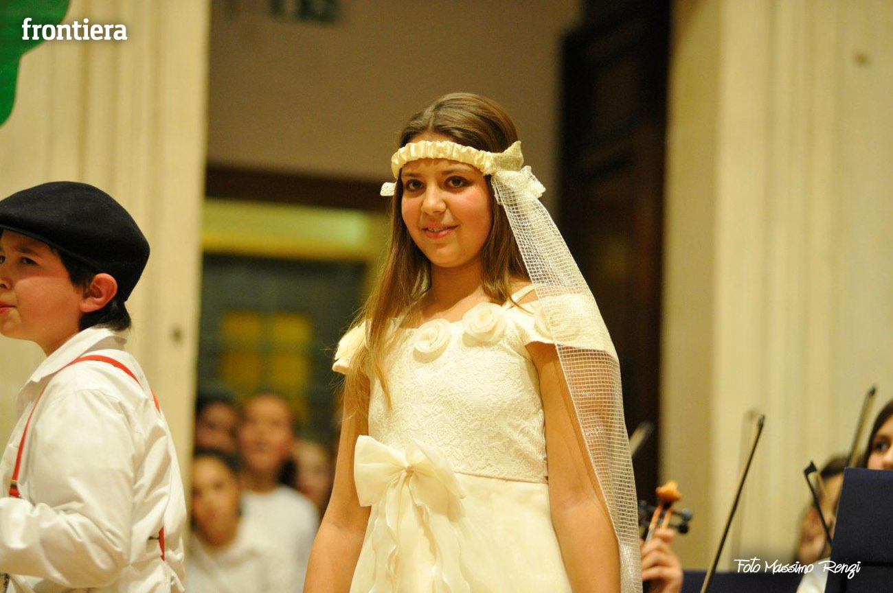 Ce n’erano diversi di loro, insieme ad altri compagni di diverse classi delle medie, a interpretare i personaggi de I capelli del diavolo, rielaborazione (curata dalla professoressa Elisabetta Galassetti) della commedia musicale di Roberto Piumini, basata su una celebre fiaba dei Fratelli Grimm. Ad eseguire le canzoni tra una scena e l’altra, il coro d’istituto formato dai ragazzi delle tre quinte elementari e delle sezioni musicali di prima media (maestro del coro la professoressa Sara Montani), mentre i bravi musici dell’orchestra d’istituto, provenienti da classi musicali seconde e terze preparate dai diversi insegnanti di strumento, accompagnavano il canto a suon di violini, flauti, clarinetti, tastiere e basso, sotto la direzione del professor Ruggero Russi che ha provveduto all’arrangiamento delle partiture. A completare il tutto, i piccolini della scuola dell’infanzia con le loro coreografie e le rime di apertura e chiusura, per concludere con la canzone di augurio natalizio finale.