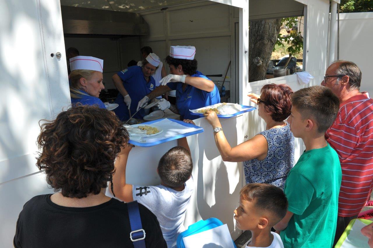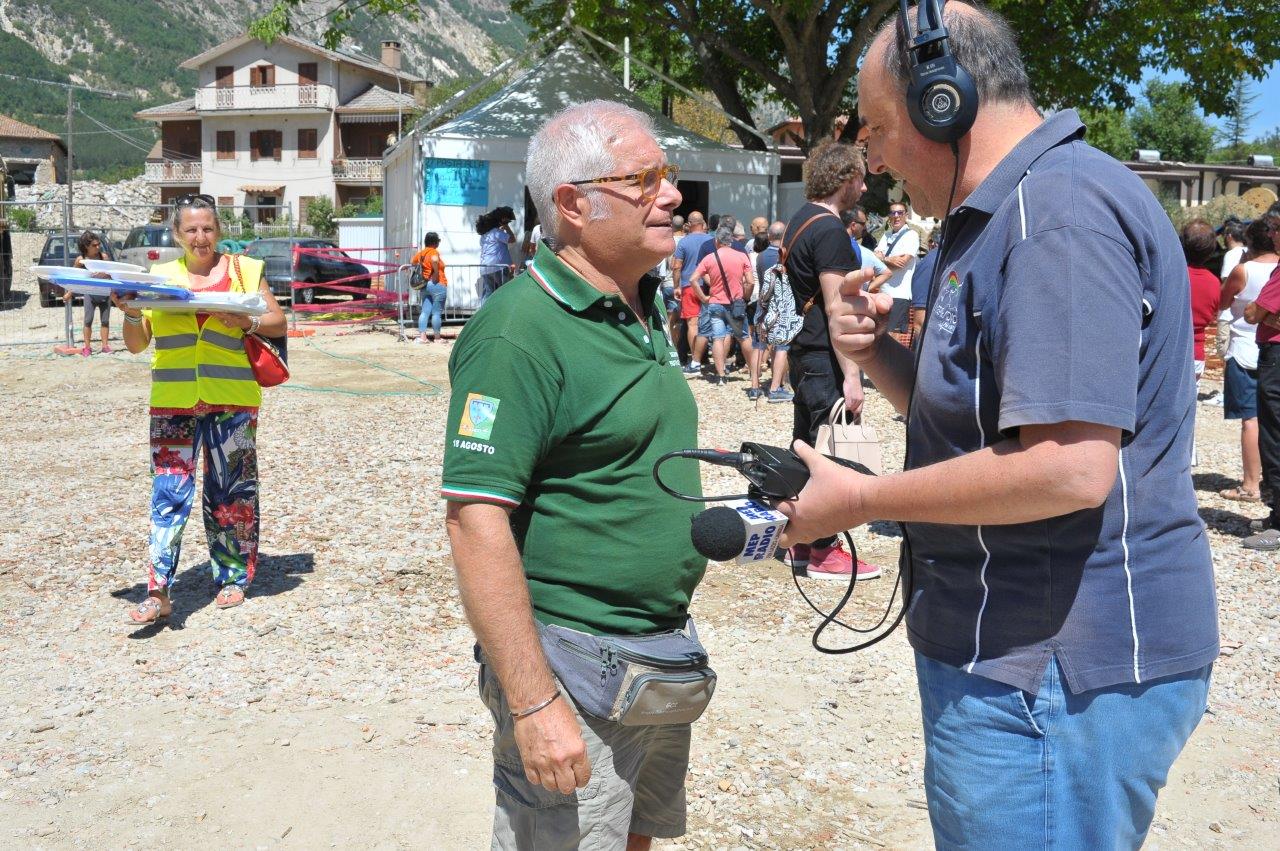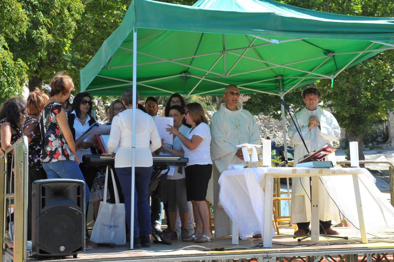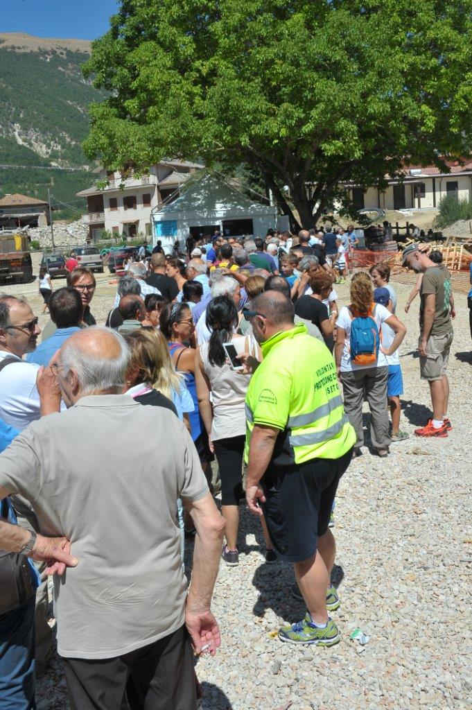 Fra i tavoli si vedono aggirarsi anche don Stanislao, che da Grotti e Casette non manca di fare le sue puntatine tra la comunità accumolese che, in questi mesi, ha seguito durante il periodo in cui è stata sfollata sulla costa e alla quale, lui che vi era stato parroco fino a qualche anno fa, continua tuttora a stare vicino, come pure i sai francescani dei frati Cappuccini che dal “campo base” a Sant’Angelo continuano a garantire una presenza pastorale tra le genti ferite dell’altopiano, e di padre Massimo, che di passaggio in valle reatina è voluto tornare a salutare la gente di qua dove, assieme ai confratelli Minori, ha svolto mesi di prezioso servizio. Anche da parte della Chiesa, infatti, si vuol condividere il cammino di ripresa pure in questi momenti che segnano la grande voglia di riscatto e normalità.