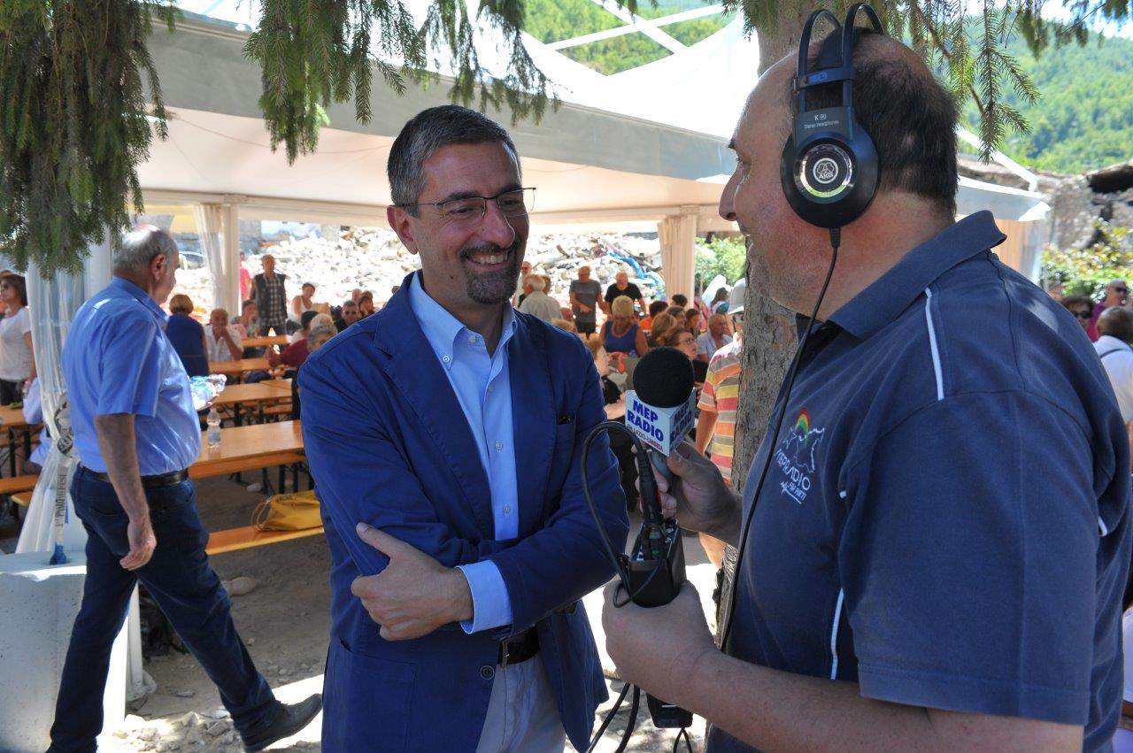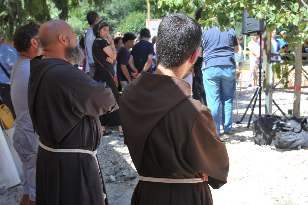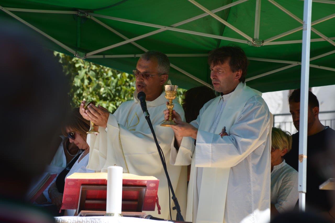 Fra i tavoli si vedono aggirarsi anche don Stanislao, che da Grotti e Casette non manca di fare le sue puntatine tra la comunità accumolese che, in questi mesi, ha seguito durante il periodo in cui è stata sfollata sulla costa e alla quale, lui che vi era stato parroco fino a qualche anno fa, continua tuttora a stare vicino, come pure i sai francescani dei frati Cappuccini che dal “campo base” a Sant’Angelo continuano a garantire una presenza pastorale tra le genti ferite dell’altopiano, e di padre Massimo, che di passaggio in valle reatina è voluto tornare a salutare la gente di qua dove, assieme ai confratelli Minori, ha svolto mesi di prezioso servizio. Anche da parte della Chiesa, infatti, si vuol condividere il cammino di ripresa pure in questi momenti che segnano la grande voglia di riscatto e normalità.