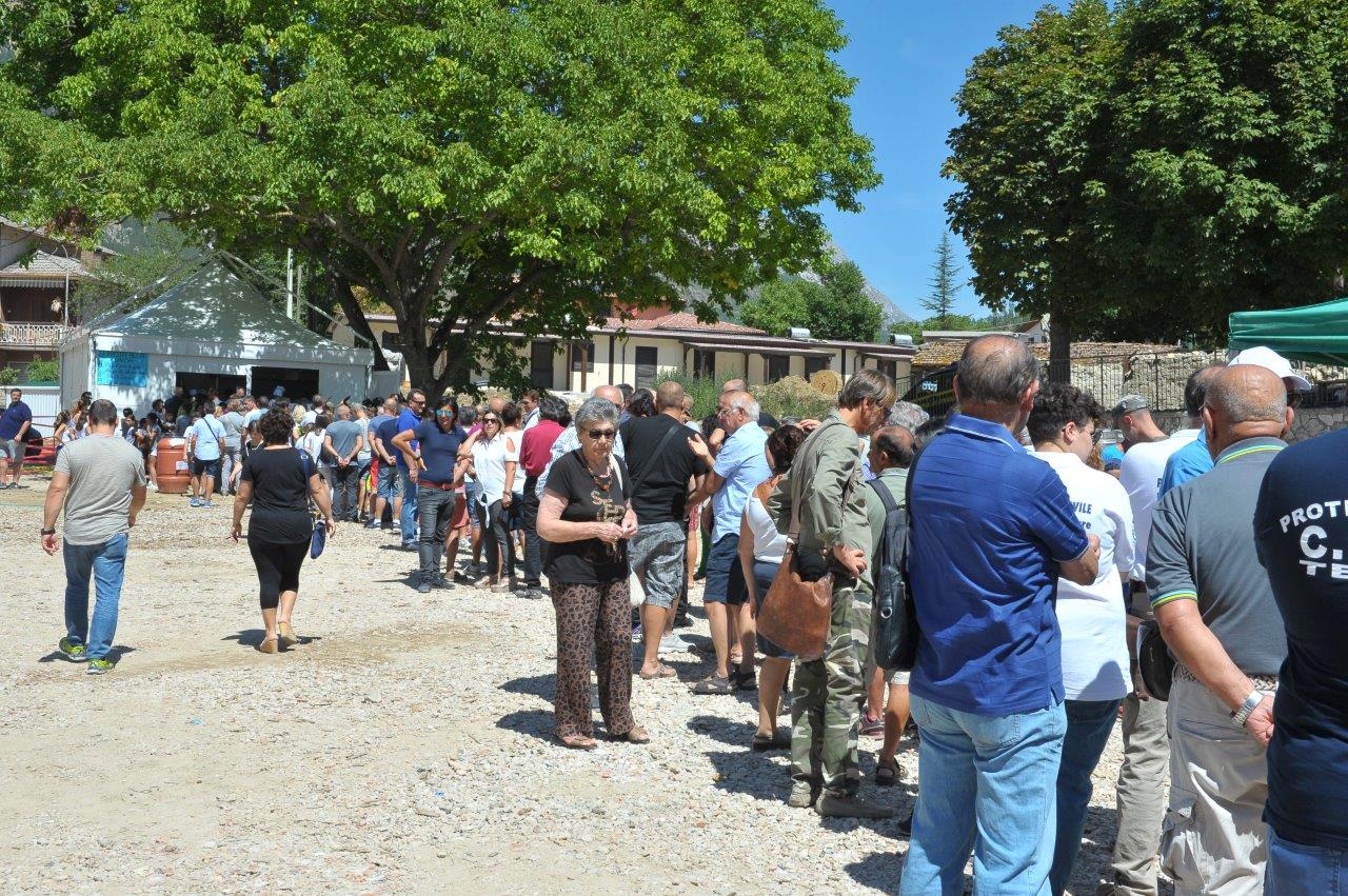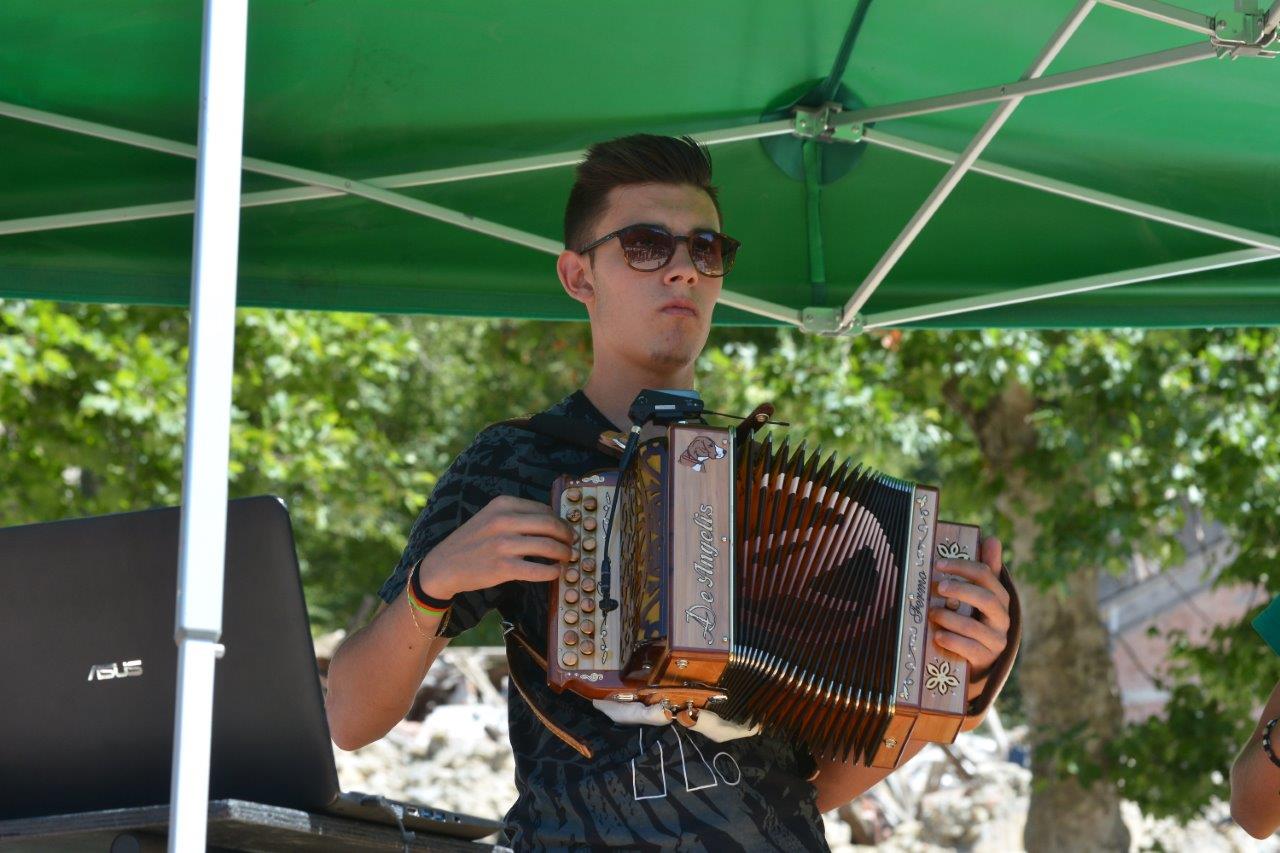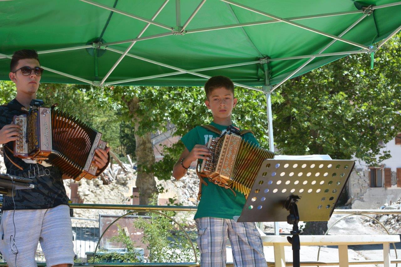 Ma loro suonano in letizia, mentre la gente fa la fila allo stand per aggiudicarsi il sospirato piatto di mezze maniche con guanciale e pecorino assieme alla bruschettina guarnita di gustosa salsiccia. Così come suonano organetti e complessino, nella giornata di sagra che nulla di lieto vuol farsi mancare.