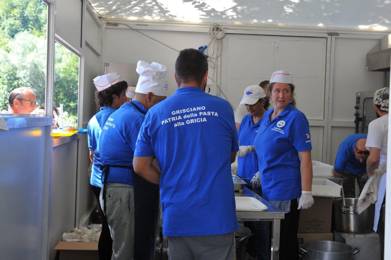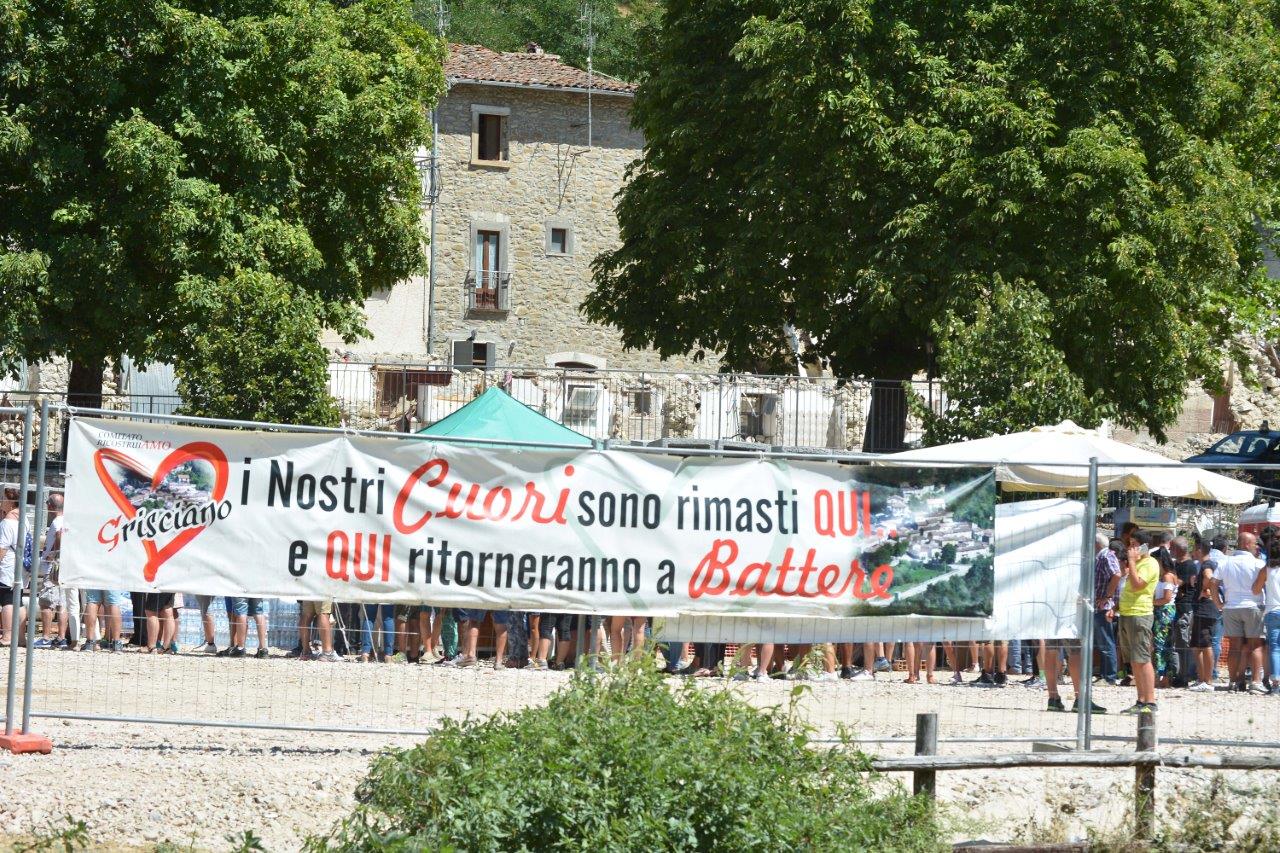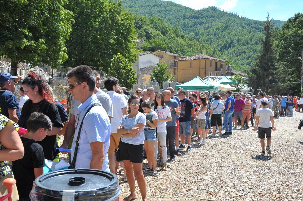 Sullo sfondo i segni delle ferite, fra macerie ancora accumulate e ponteggi di sicurezza. Ma la spianata ai piedi di Grisciano nella giornata del 18 agosto offre una location che tutto dice «andiamo avanti». La frazione di Accumoli, ultimo paese della provincia reatina prima del vicino confine marchigiano, non perde l’occasione di vivere al massimo la manifestazione che dà lustro a ogni sua estate, e che l’anno scorso era arrivata pochi giorni prima del devastante terremoto: la sagra della gricia.