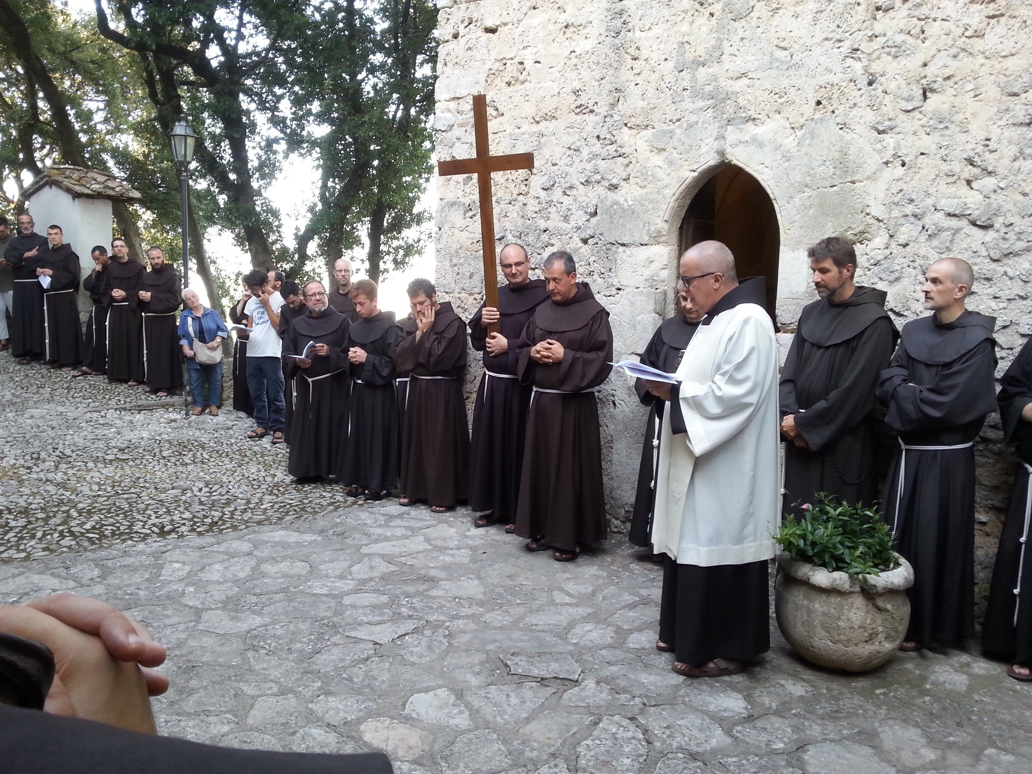Massimo, ligure della Spezia, e Daniele, fiorentino, appartengono alla Provincia di San Francesco Stimmatizzato, corrispondente alla Toscana; Danilo, di Lanciano, fa invece capo alla Provincia San Bonaventura, sorta recentemente dalla fusione delle preesistenti Province minoritiche del Lazio e dell’Abruzzo (che già da prima in realtà erano in simbiosi per quanto riguarda la formazione dei futuri frati). Da qualche anno postulandato e noviziato sono divenuti interprovinciali per le due circoscrizioni, quella toscana e quella laziale-abruzzese: collocati il primo a Fonte Colombo (che per tanti anni aveva accolto i novizi) e il secondo a La Verna. Il convento che custodisce la memoria francescana della scrittura della Regula bullata ha dunque accolto, per dodici mesi, i tre postulanti, per i quali il pomeriggio del 12 settembre si è svolto il rito di iniziazione alla vita religiosa, comunemente chiamato della vestizione.