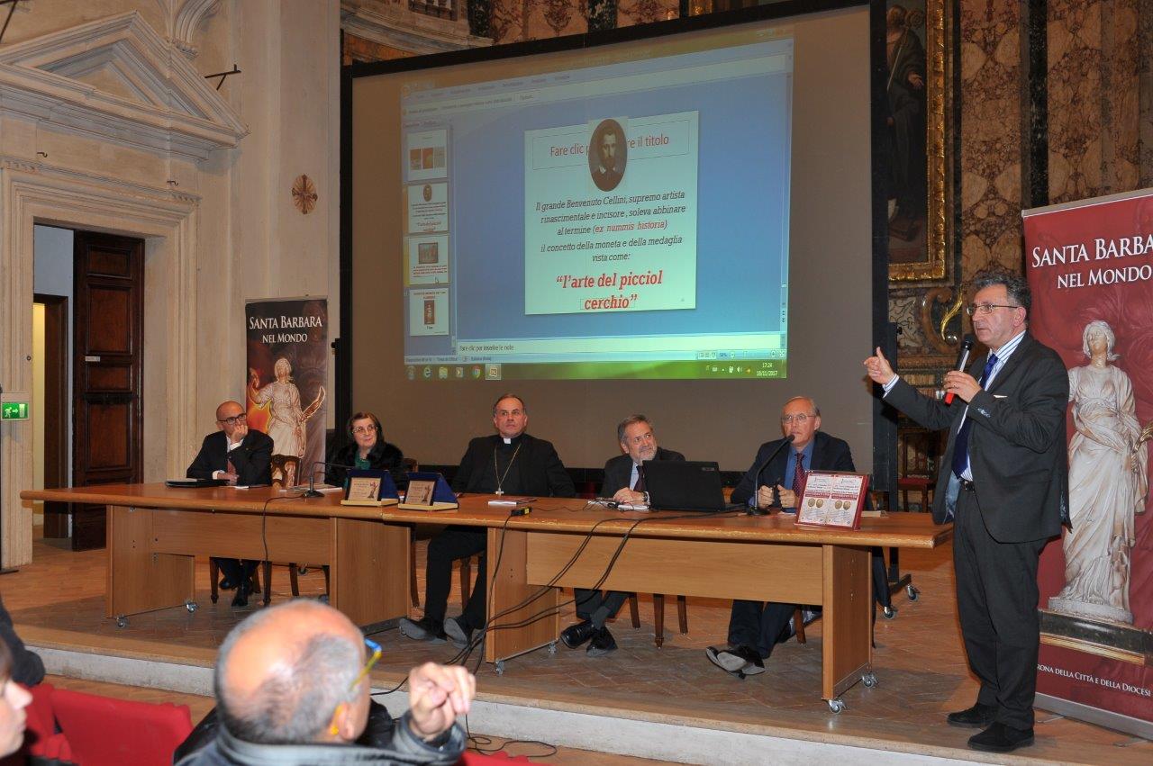 Non avrebbe potuto essere migliore l’avvio del ricco programma che l’Associazione Culturale Santa Barbara nel mondo propone per il suo 19° anno di attività al fine di valorizzare solidarietà e testimonianza di fede nel segno della patrona di Rieti: sabato 18 novembre, l’Auditorium Varrone ha accolto il vasto pubblico convenuto per assistere alla presentazione del saggio Imago Barbaræ in nummis Santa Barbara nella monetazione italiana che raccoglie la ricca documentazione messa a punto da Valentino Gunnella, apprezzato numismatico reatino (impegnato anche nell’AC diocesana).