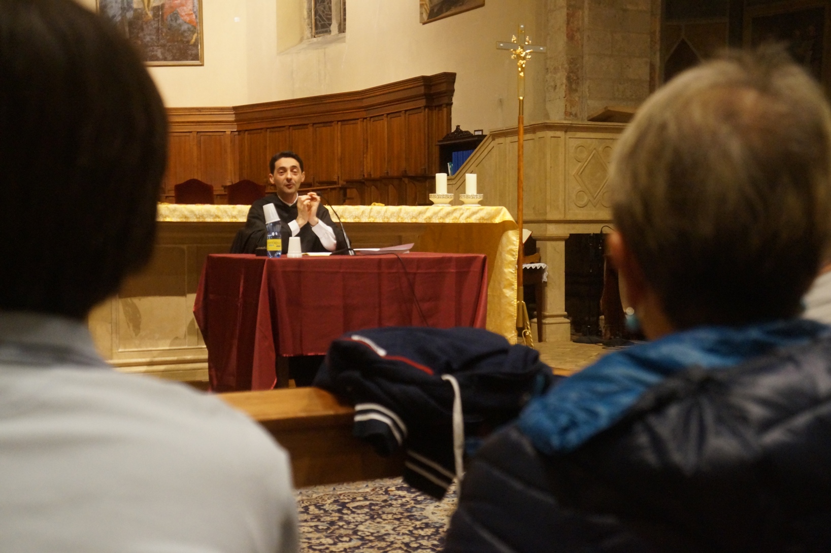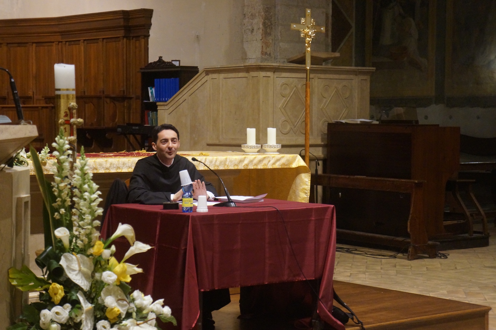 In questa prospettiva va letto il denso incontro che la comunità di piazza Mazzini e un più vasto pubblico di interessati hanno vissuto, venerdì 19 maggio alle 21, con padre Rocco Ronzani, degli Eremitani di Sant’Agostino. Padre Rocco, arrivato a Rieti vestito dell’abito nero degli Agostiniani, è ormai un amico della nostra diocesi, alla quale lo legano amicizie personali risalenti ai tempi – non lontanissimi in verità, giacché ha solo 38 anni – dei suoi studi all’Archivio Segreto Vaticano e la passione per il tempio edificato tanti secoli fa dal suo ordine nel cuore della città comunale: risale ad almeno un lustro fa la sua prima visita alla chiesa, in compagnia di un altro grande studioso agostiniano, padre Vittorino Grossi, quando i due rimasero incantati dalla basilica appena rimessa a nuovo, alle cui ricchezze di fede e di arte furono allora introdotti da un mons Salvatore Nardantonio comprensibilmente orgoglioso ed emozionato.