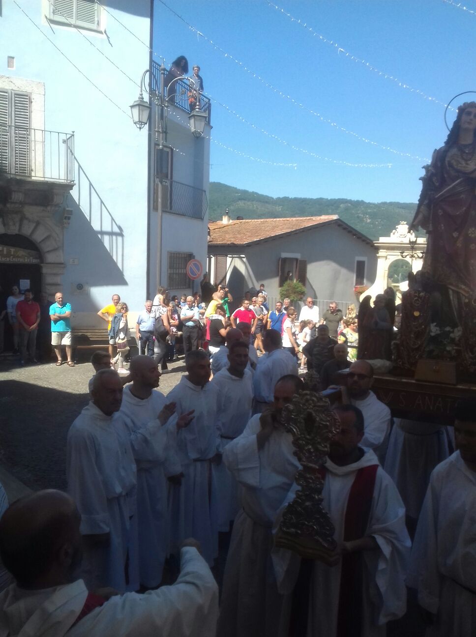 L’intensa preghiera del sabato ha preparato il campo alla ricca giornata domenicale, apertasi all’alba con le celebrazioni che hanno visto ritornare dal paese al santuario per poi ricondurre nuovamente l’effigie della santa alla chiesa parrocchiale di San Giovanni Evangelista, dove la Messa solenne è stata celebrata da padre Andrea Stefani, guardiano del santuario francescano di Greccio, che i parroci don Sante e padre Rossano hanno poi invitato a tornare a Castel di Tora nei giorni successivi per una conferenza su sant’Anatolia. Nel pomeriggio, i vespri solenni conclusi dal canto del Te Deum, prima della tradizionale “asta” di offerte per chi, tra i paesani, avrà l’onore, dall’anno prossimo, di aggiudicarsi la custodia della statuetta che si tiene in famiglia.