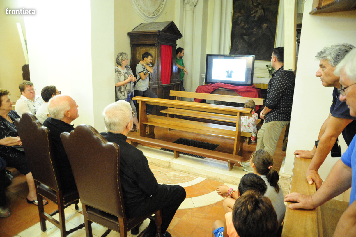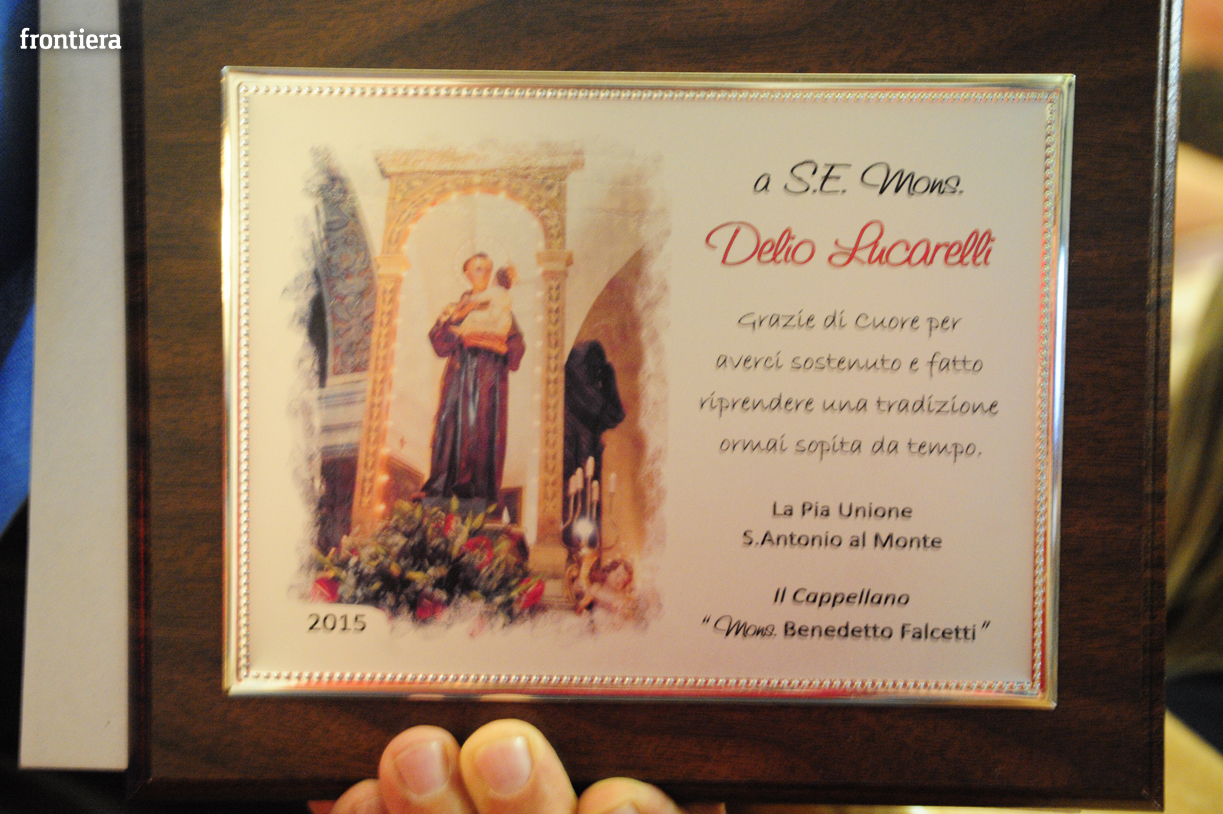 Al termine del filmato, i confratelli della Pia Unione hanno consegnato a mons. Lucarelli una targa di ringraziamento «per aver sostenuto e fatto riprendere una tradizione ormai sopita da tempo» e tributato al vescovo un calorosissimo applauso.