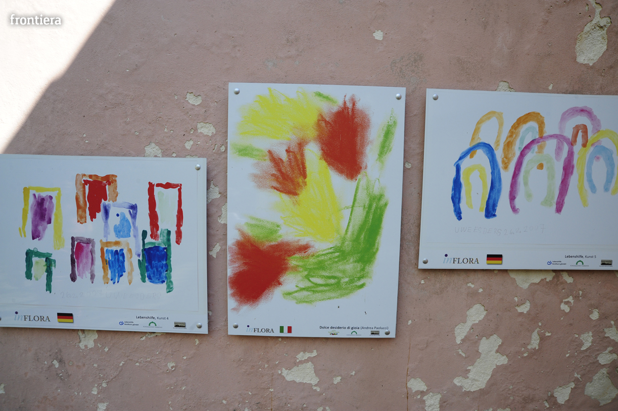 Alcune immagini dalla galleria d’arte all’aperto allestita a Porta d’Arce, presso il Centro Sant’Eusanio e in via delle Stelle, con opere realizzate da artisti e persone con disabilità, provenienti dalle città di Saint-Pierre-lès-Elbeuf, Nordhorn e Rieti.