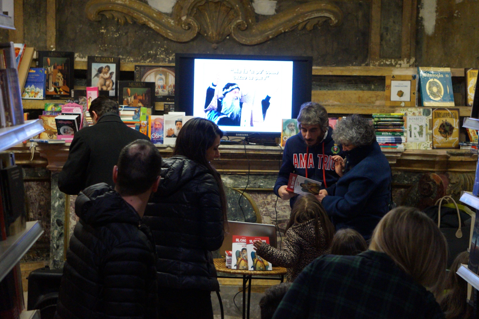 Venerdi 3 marzo, presso la Libreria Rieti in via Roma, è stato presentato Se, ciao core. Le più belle frasi di Osho, quelle veraci (Magic Press) di Federico Palmaroli. La nuova raccolta di vignette, nate sulla pagina Facebook ‘le più belle frasi di Osho’ appunto, contiene nuove immagini del celebre mistico indiano associate a tipiche espressioni del dialetto romanesco. L’effetto è esilarante e la naturale simpatia di Palmaroli ha stregato il numeroso pubblico presente alla presentazione.